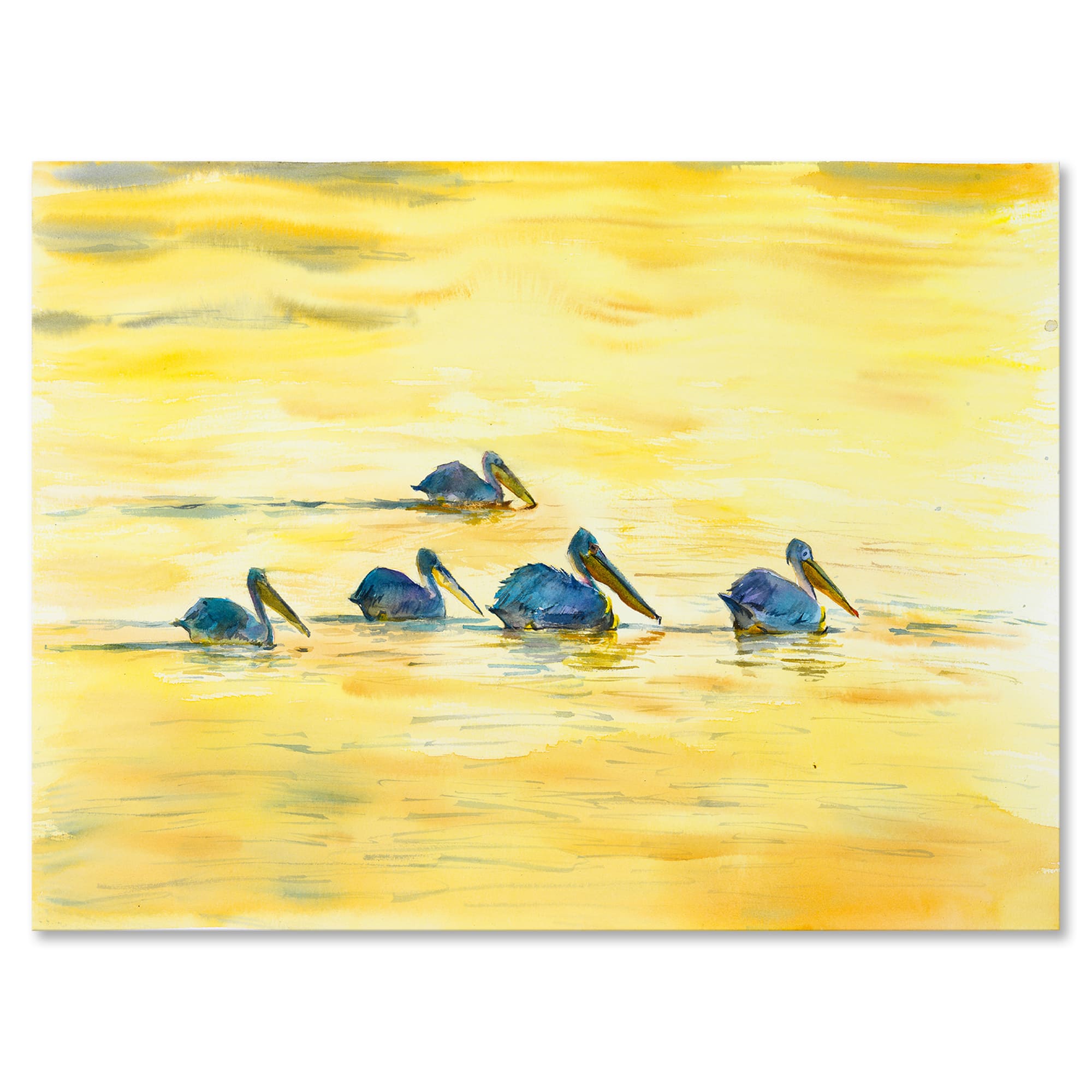 Designart - Pelicans On The Yellow River - Farmhouse Canvas Wall Art Print