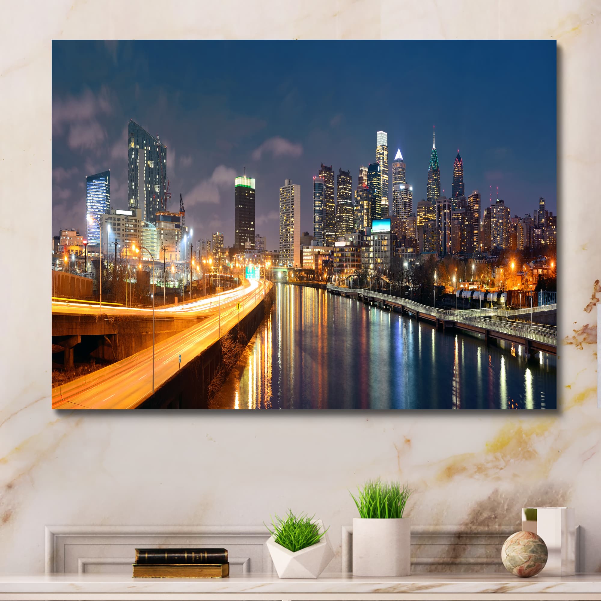 Designart - Philadelphia Skyline at Night - Cityscape Canvas Print