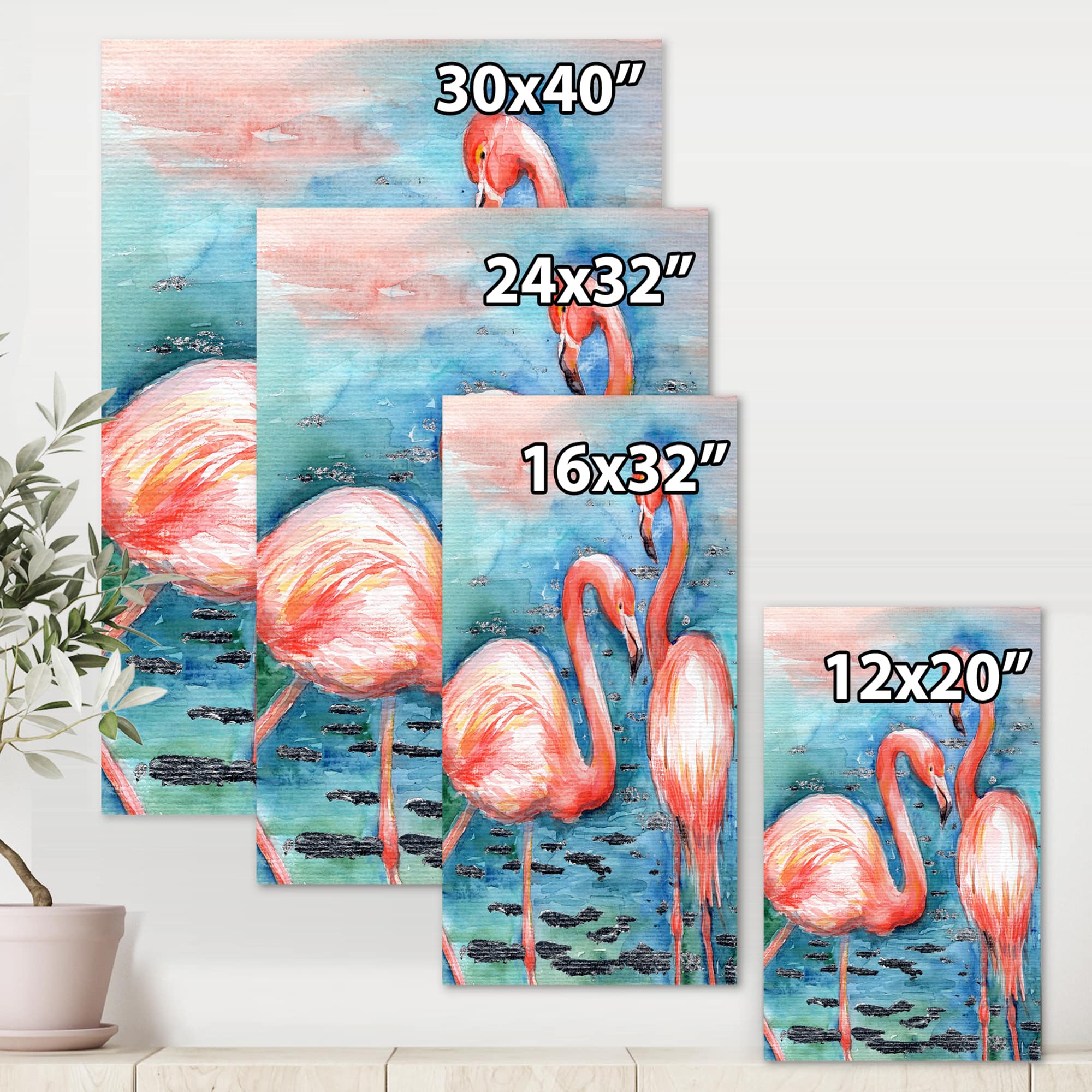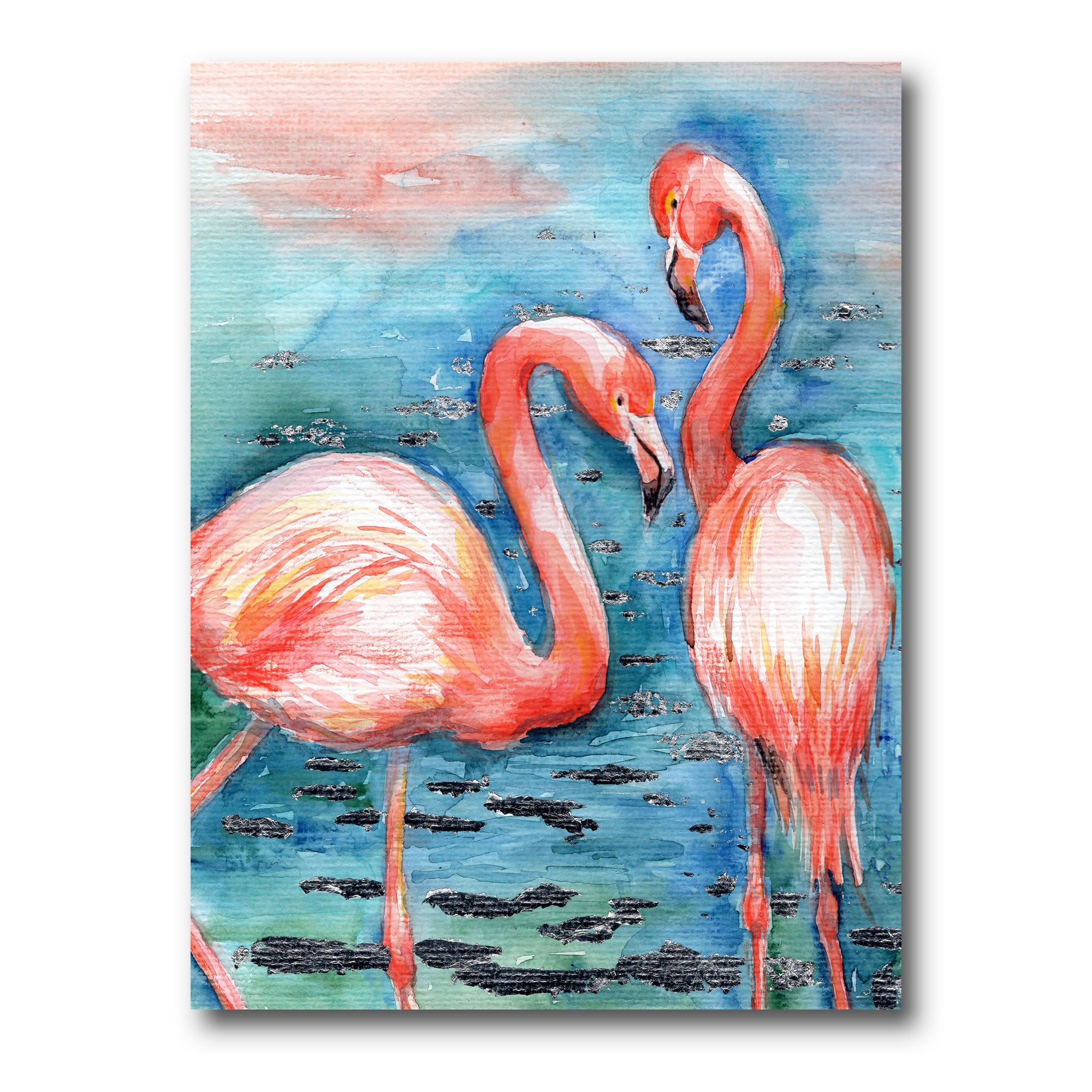 Designart - Pink Flamingos In Blue Water I - Farmhouse Canvas Wall Art Print
