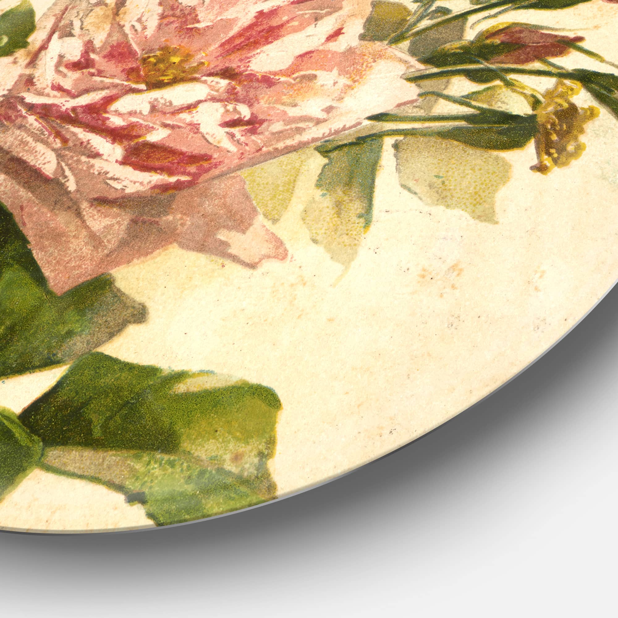 Designart - Pink Flower Illustration' Disc Floral Metal Artwork