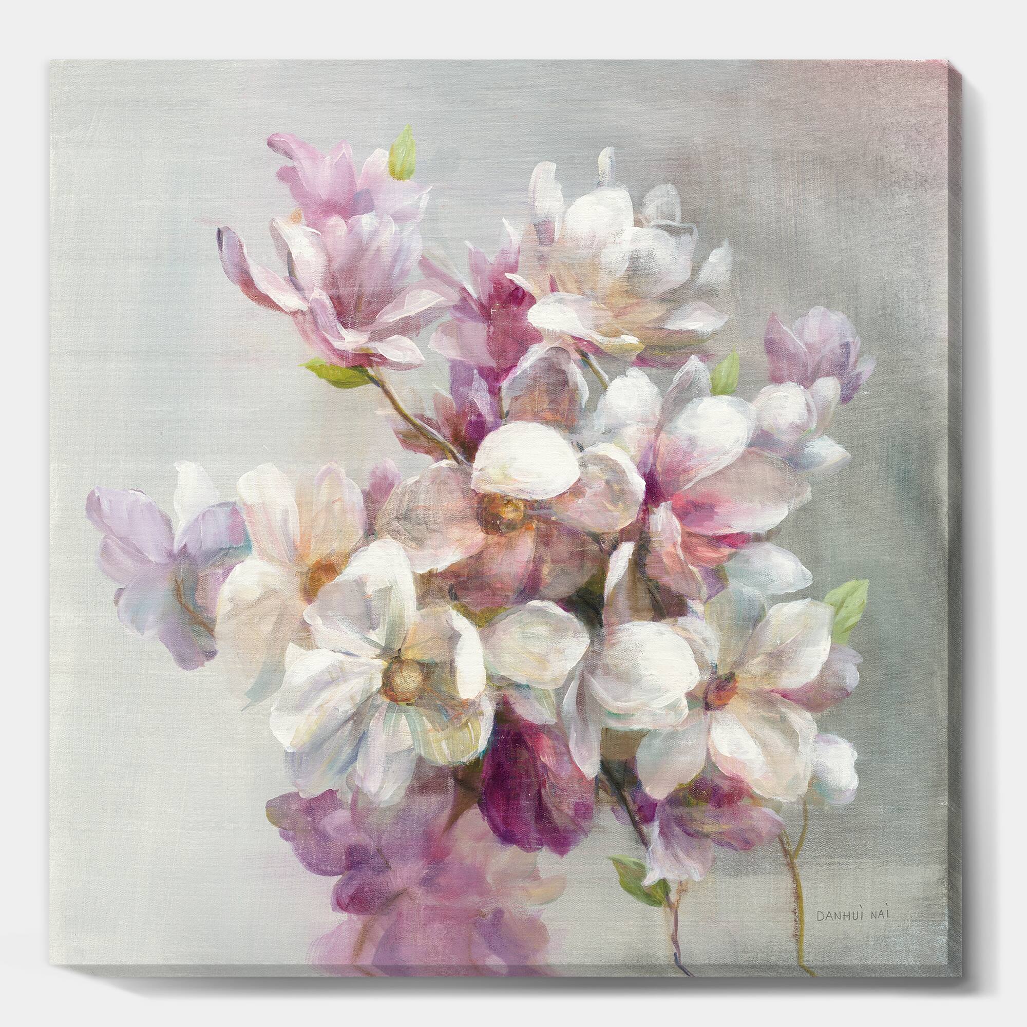 Designart - Pink Magnolia Flowers - Shabby Chic Canvas Art