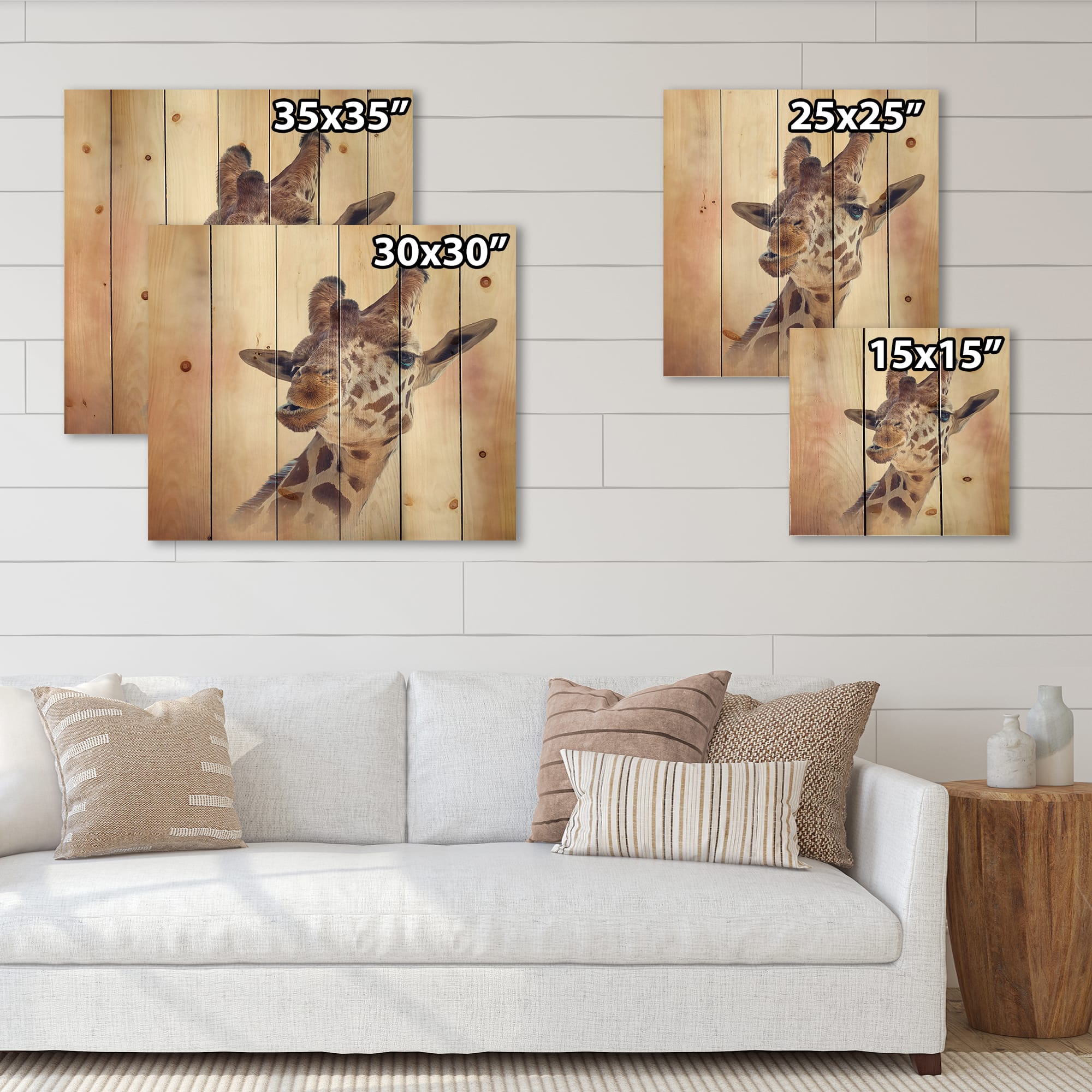 Designart - Portrait of A Giraffe I - Farmhouse Print on Natural Pine Wood