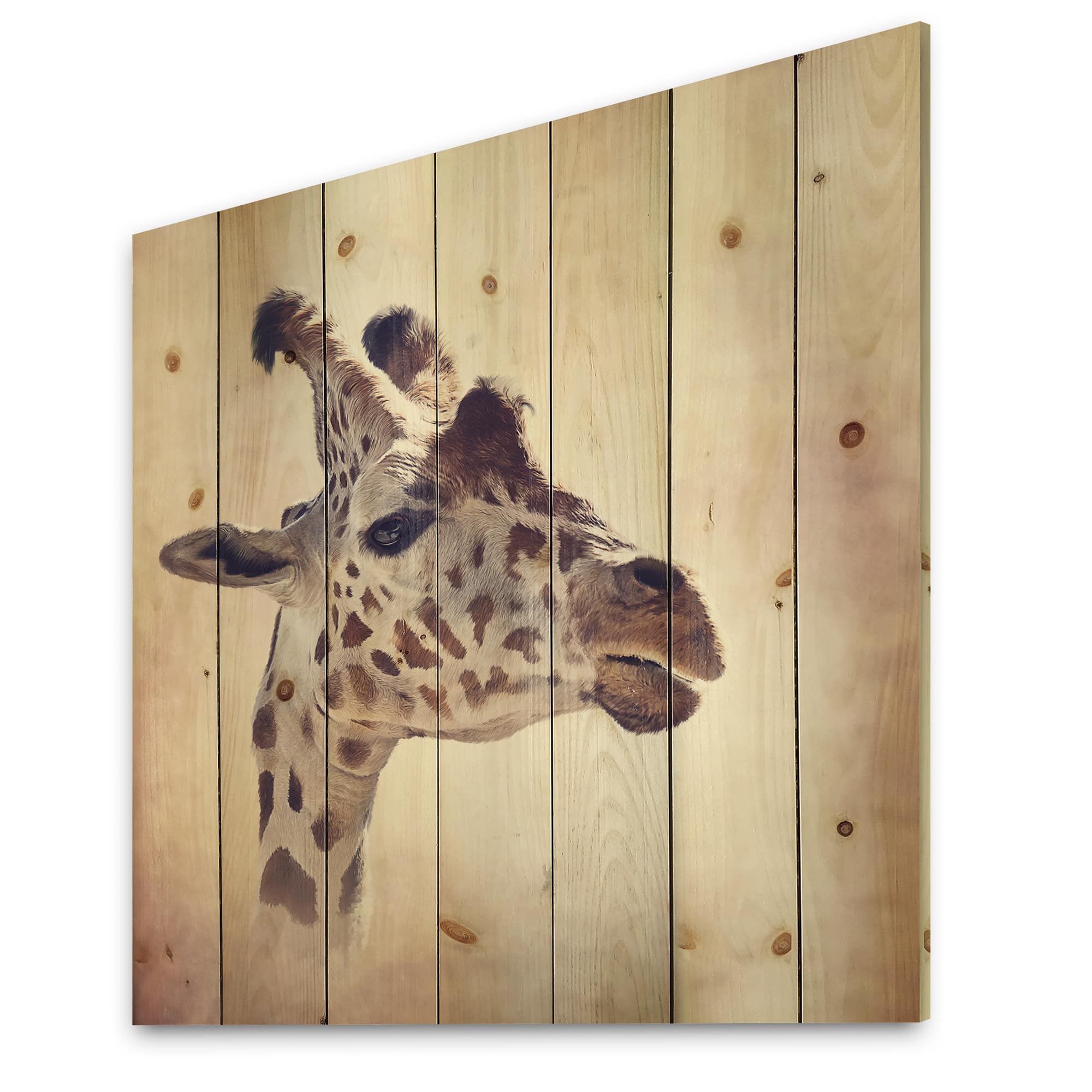 Designart - Portrait of A Giraffe III - Farmhouse Print on Natural Pine Wood