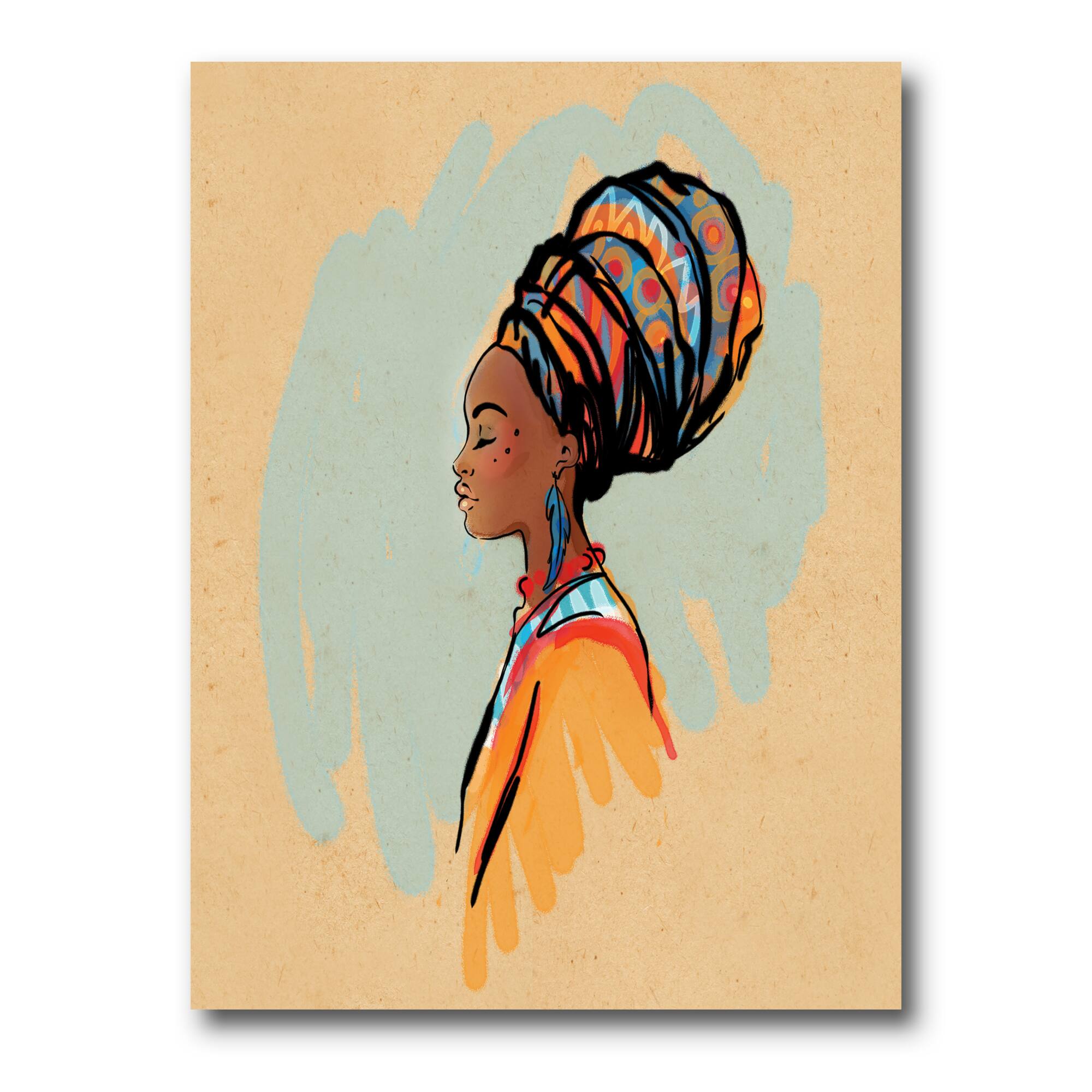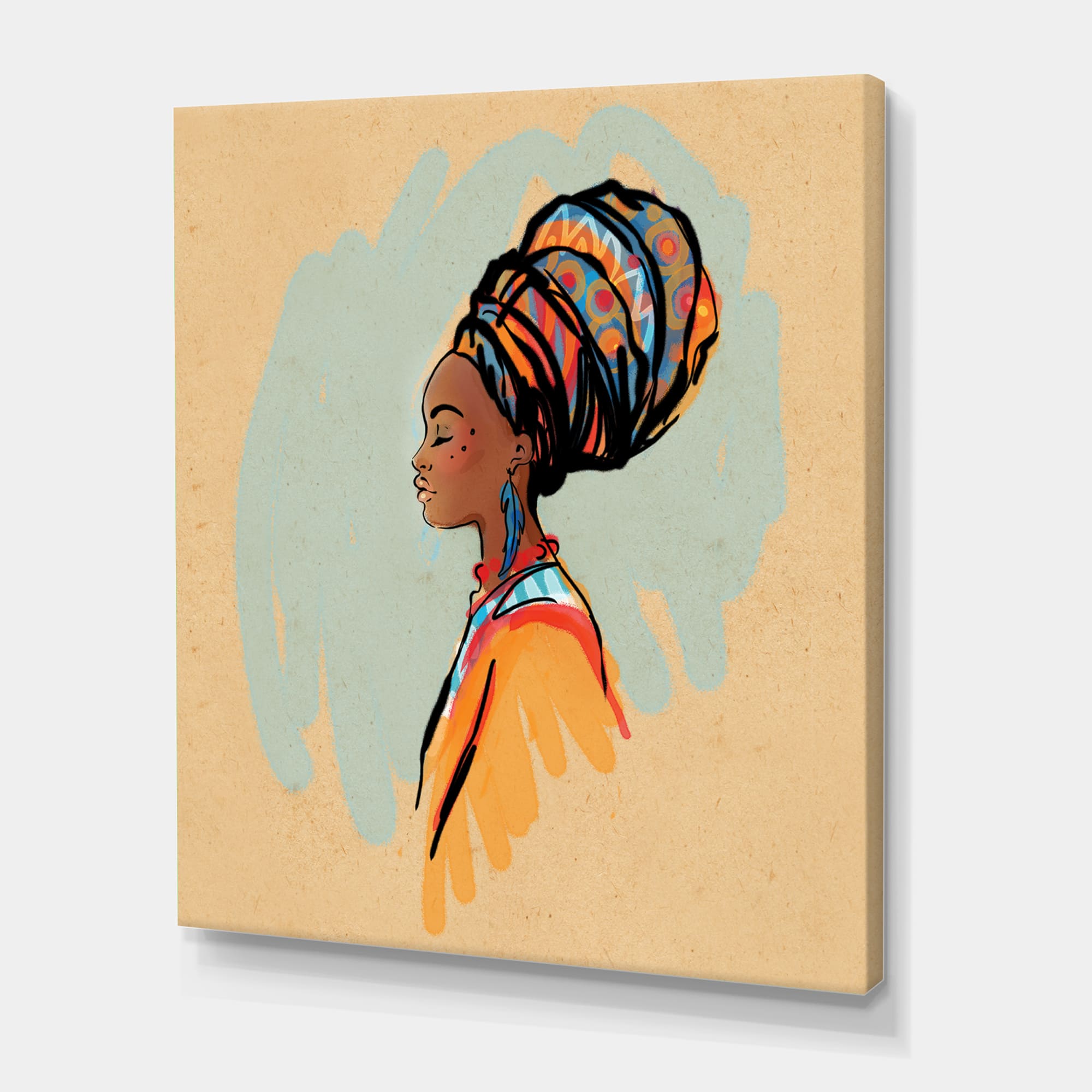 Designart - Portrait of African American Woman With Turban II - Modern Canvas Wall Art Print