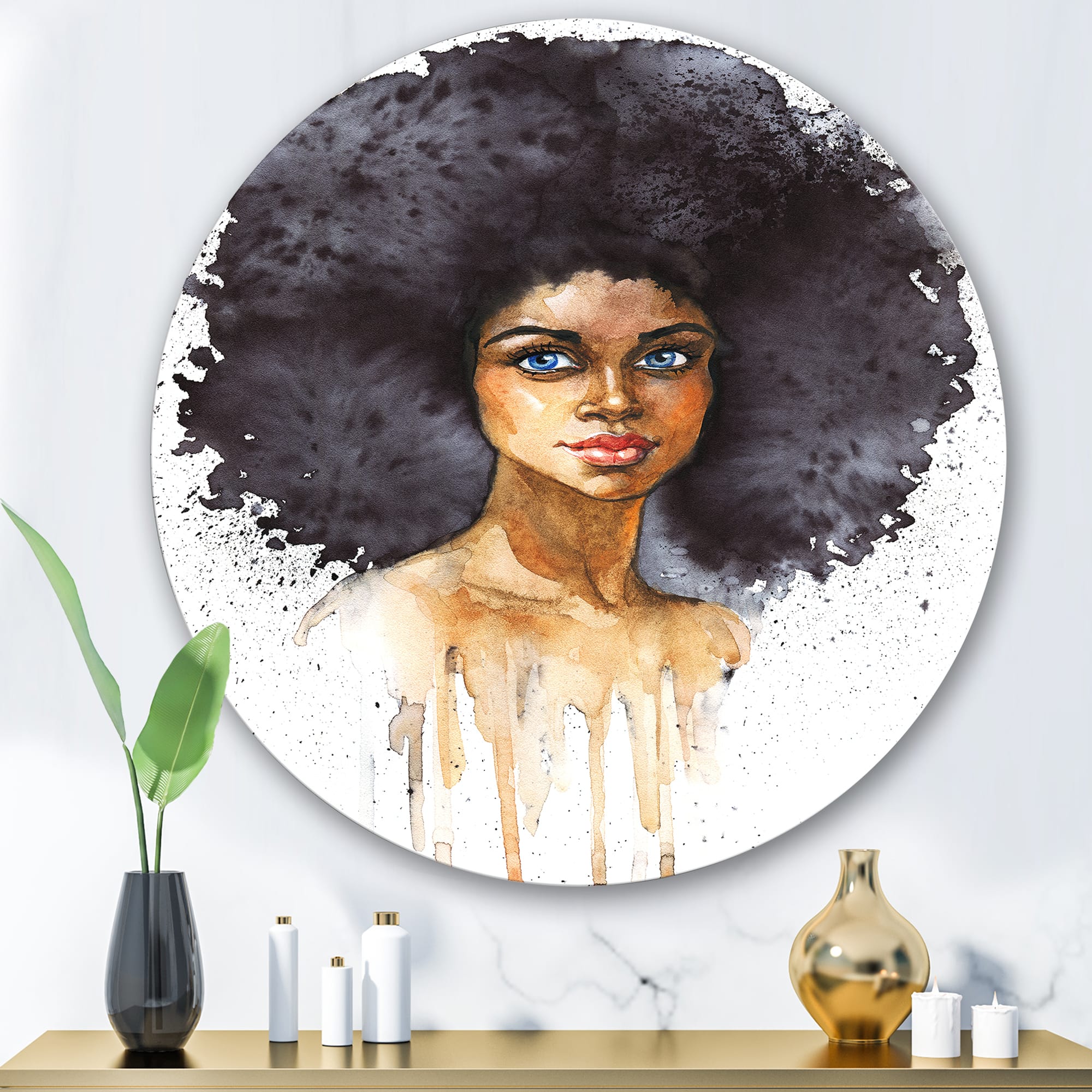 Designart - Portrait of African American Woman X - Modern Metal Circle Wall Art