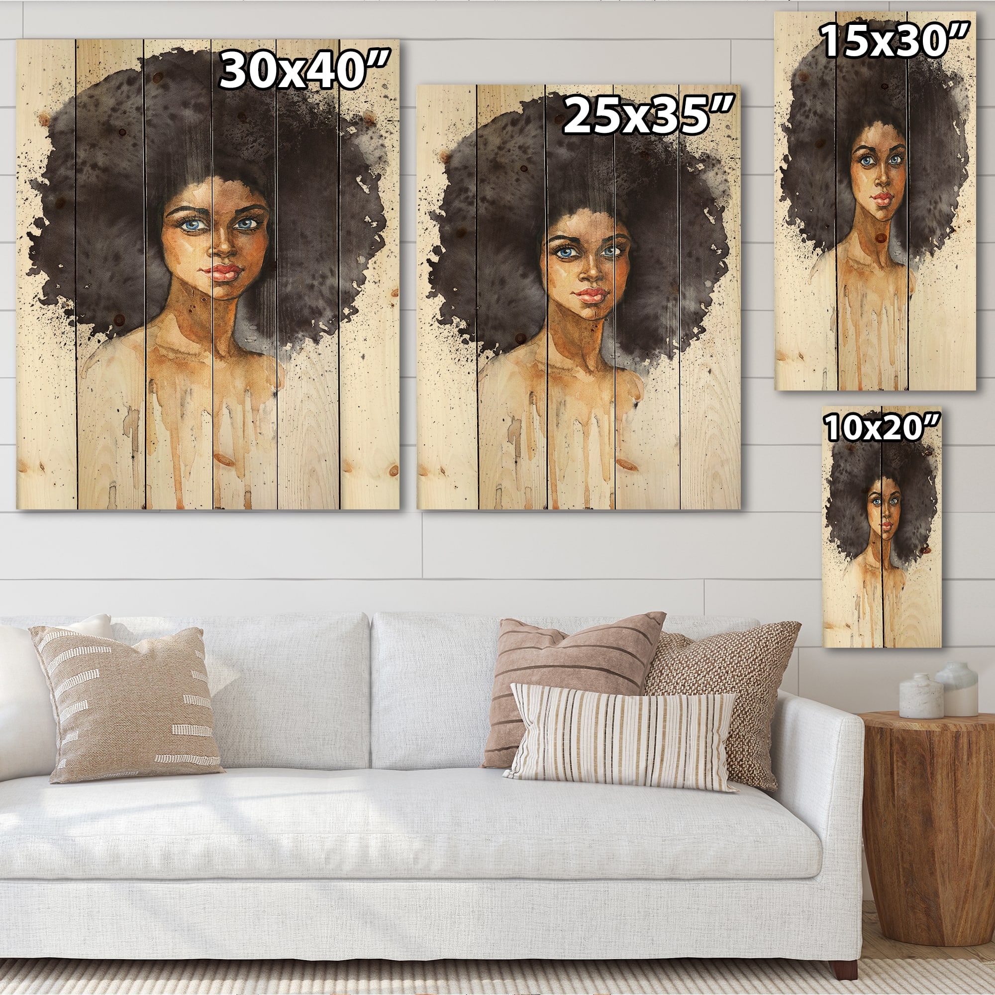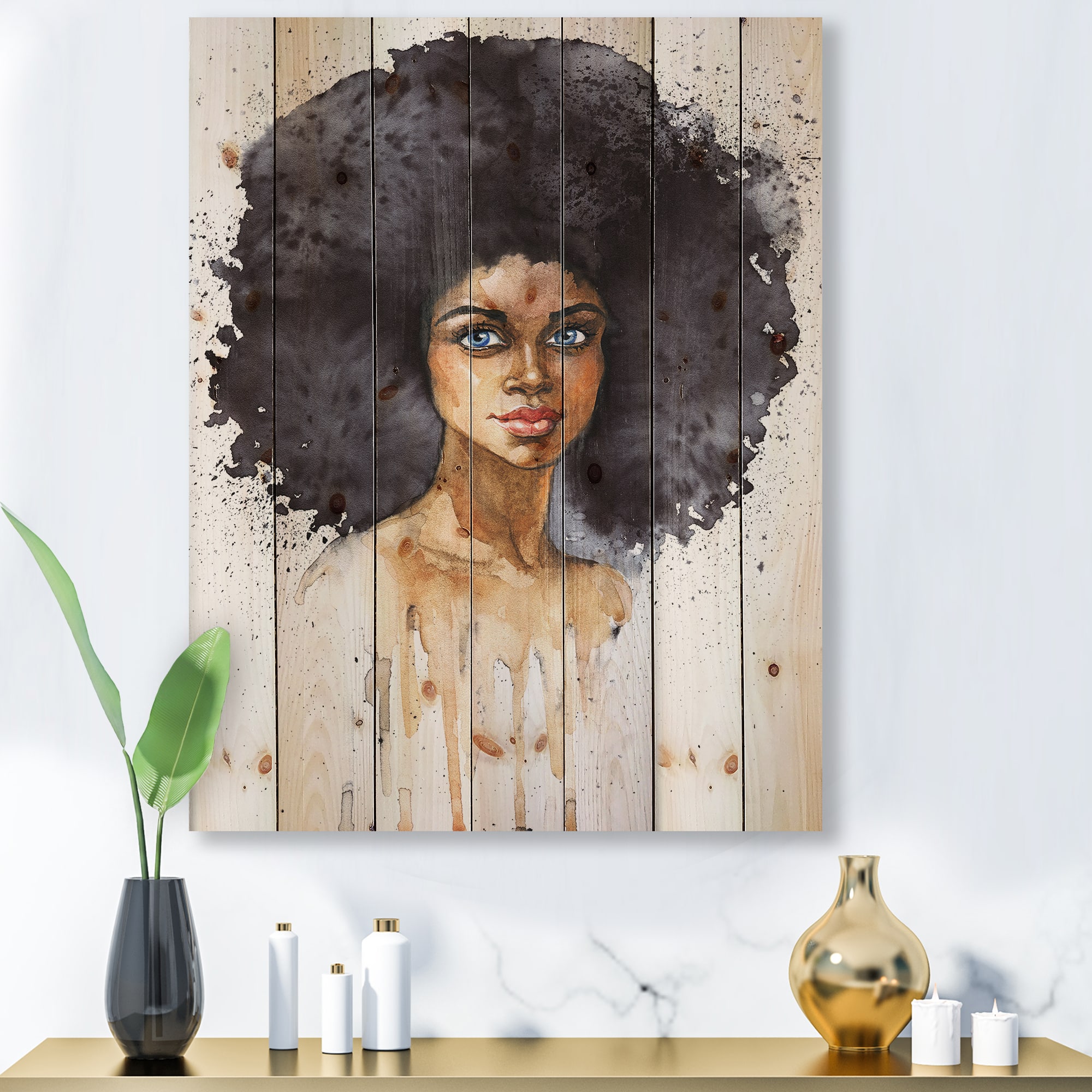 Designart - Portrait of African American Woman X - Modern Print on Natural Pine Wood