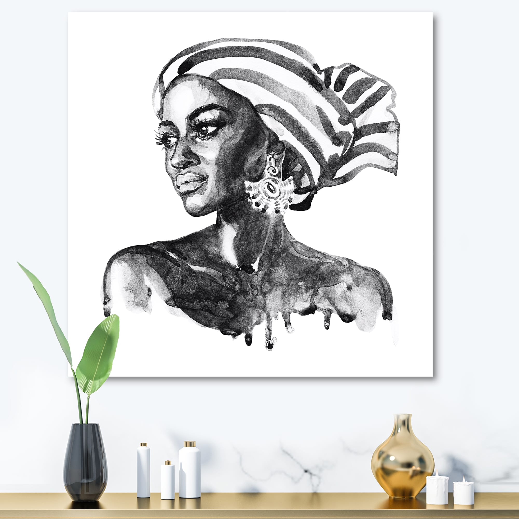Designart - Portrait of African American Woman XII - Modern Canvas Wall Art Print