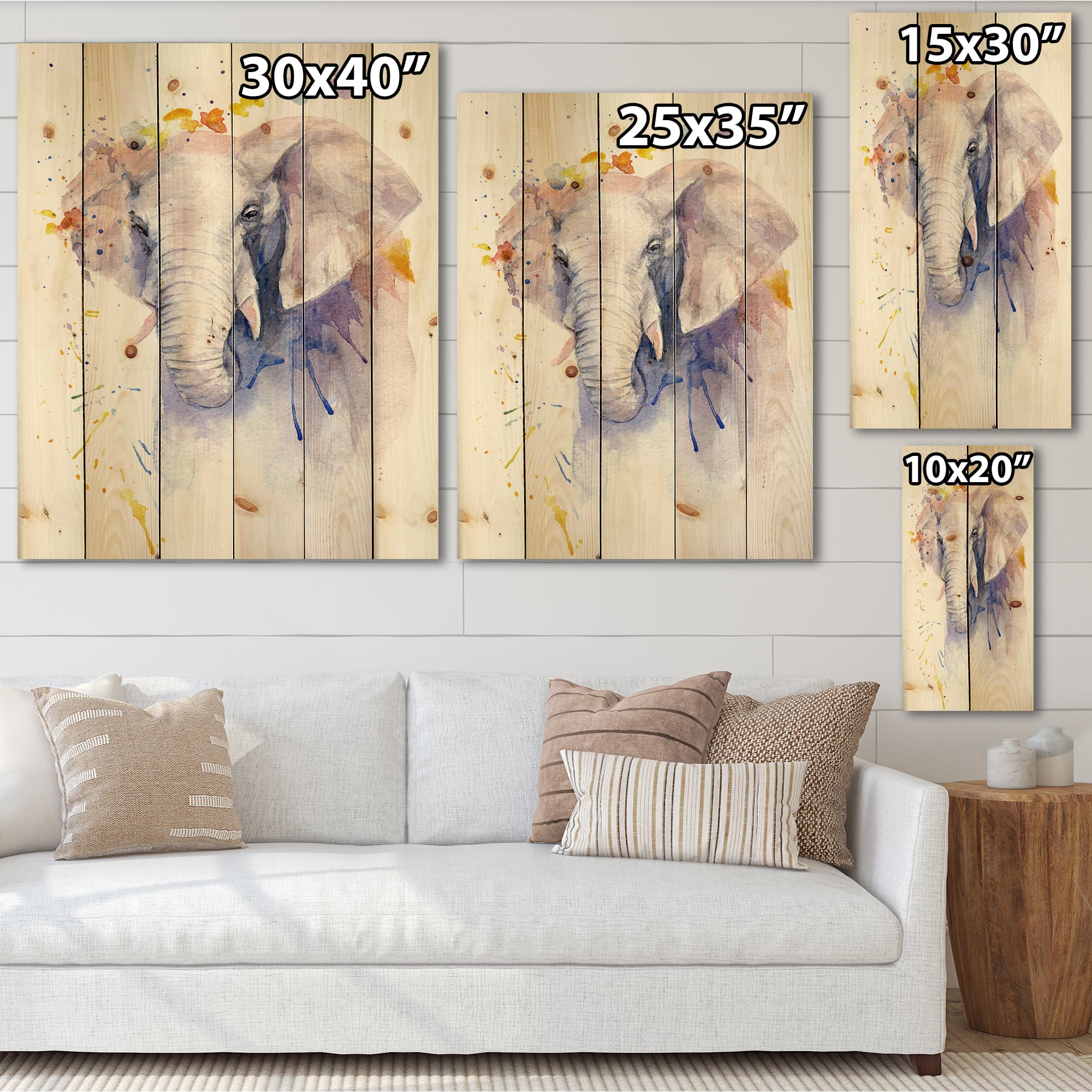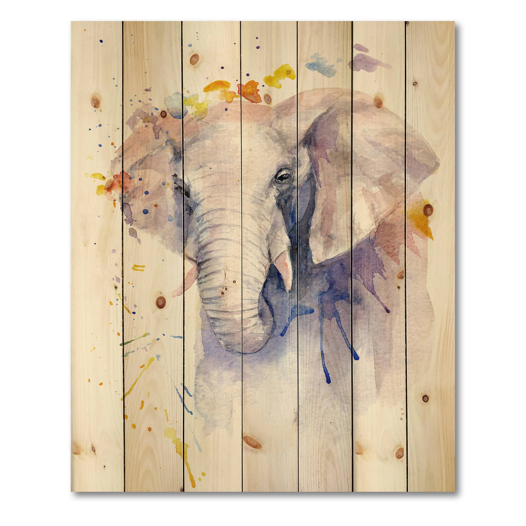Designart - Portrait of An Elephant In Flowers - Farmhouse Print on Natural Pine Wood