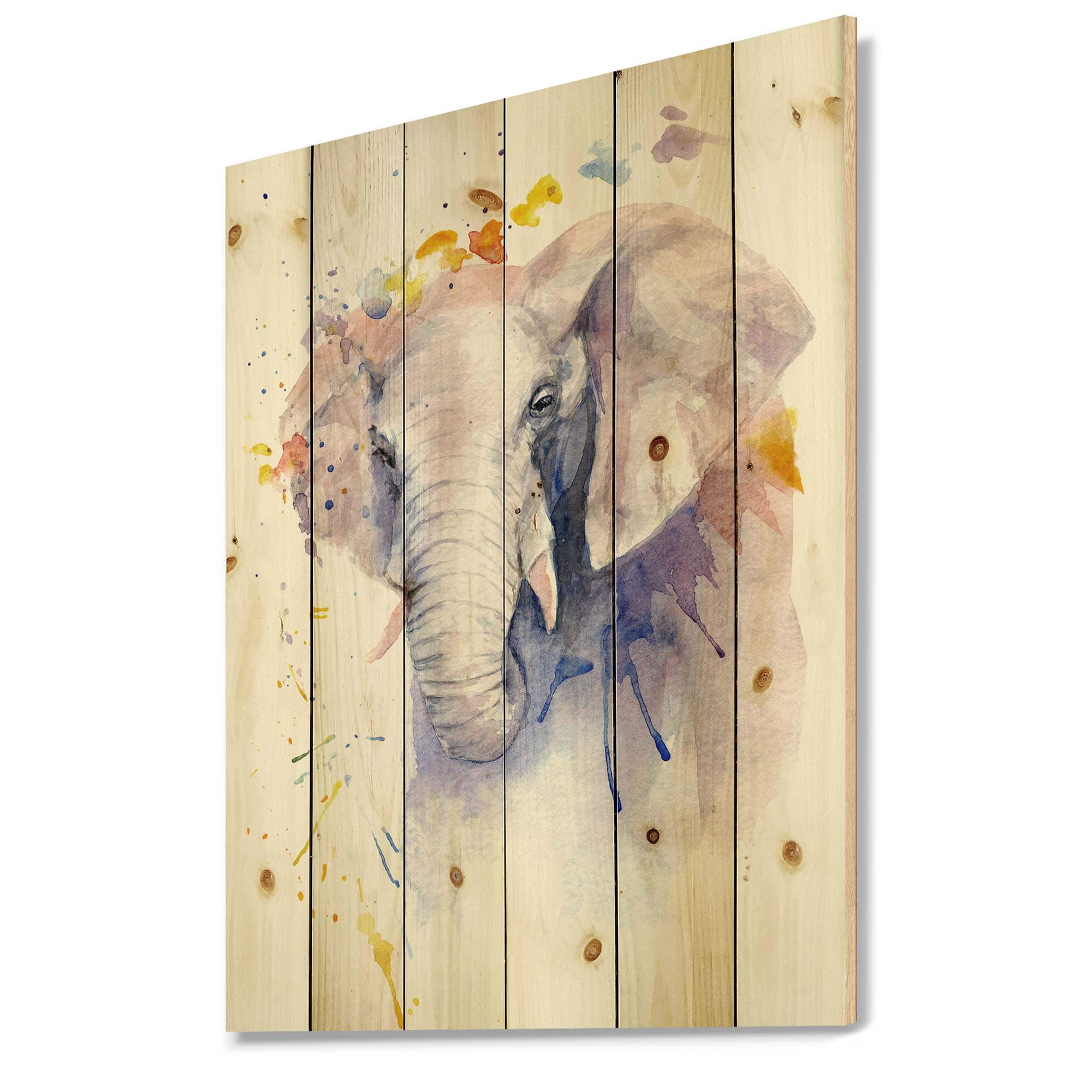 Designart - Portrait of An Elephant In Flowers - Farmhouse Print on Natural Pine Wood