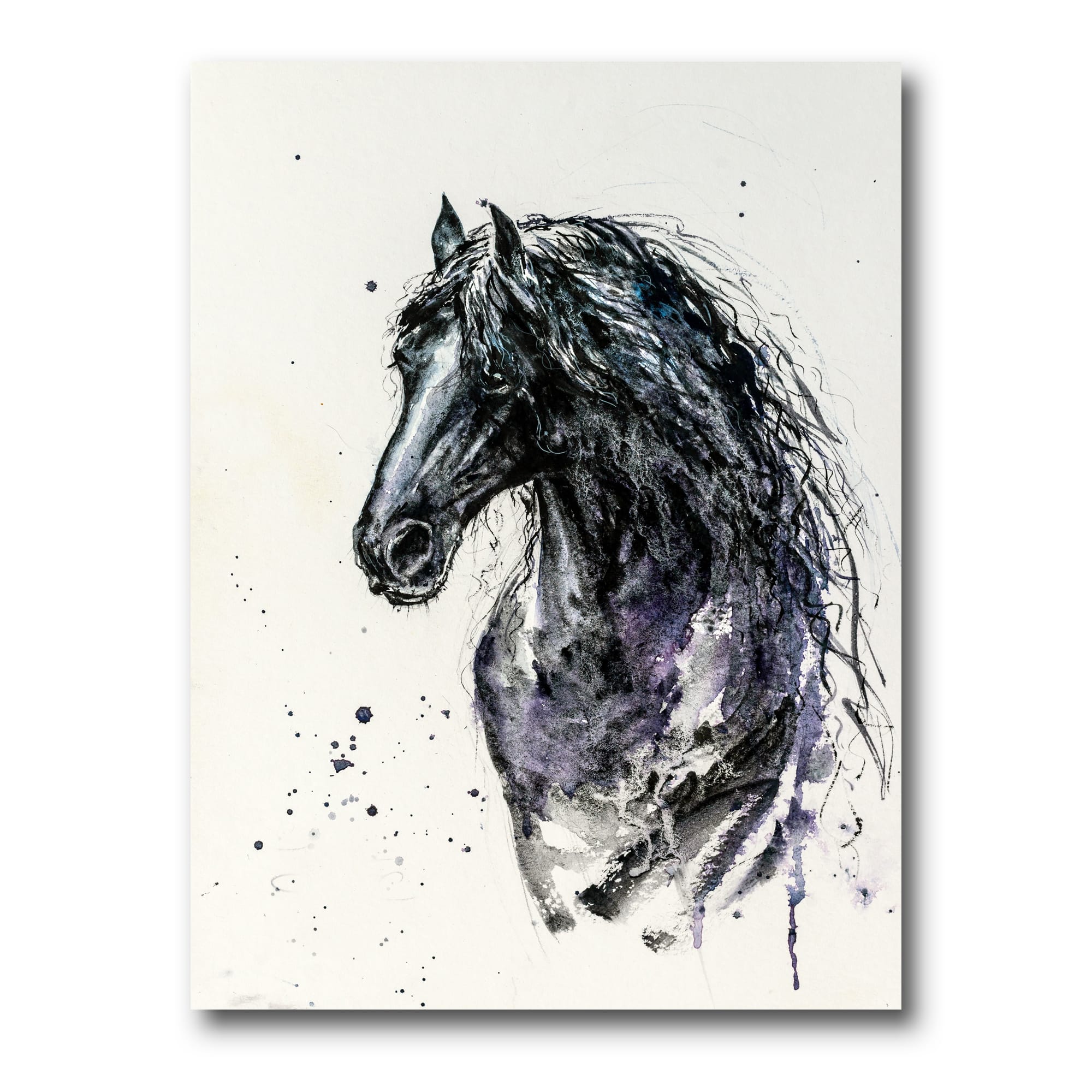 Designart - Portrait of Friesian Horse With Long Manes - Farmhouse Canvas Wall Art Print