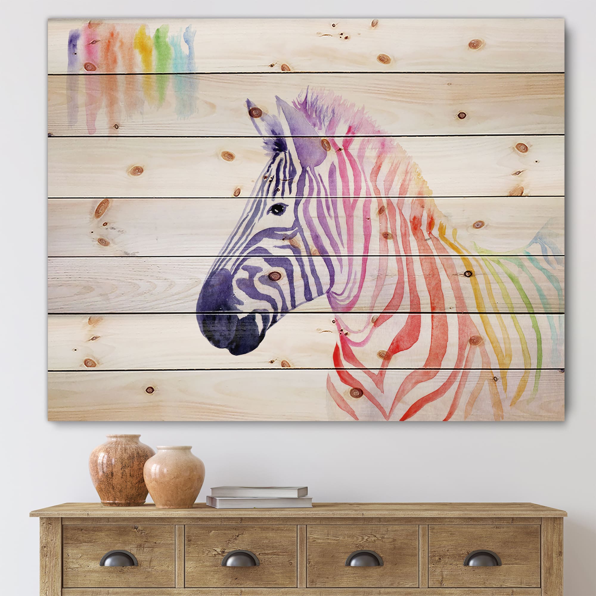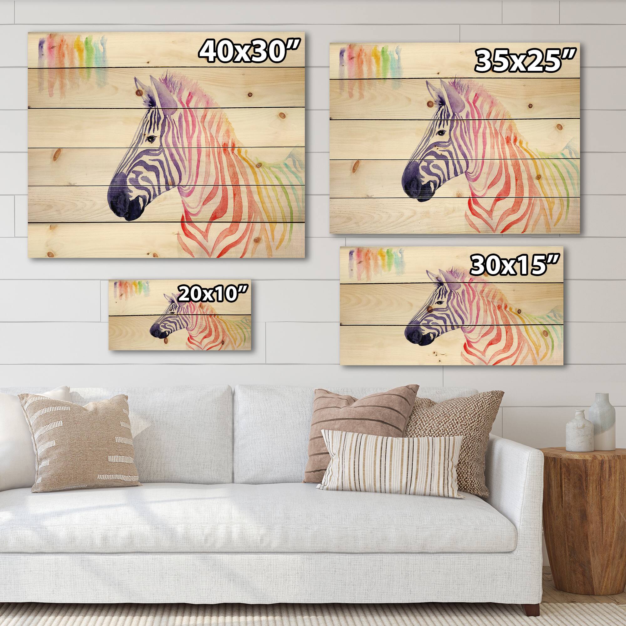 Designart - Portrait of Rainbow Zebra - Farmhouse Print on Natural Pine Wood