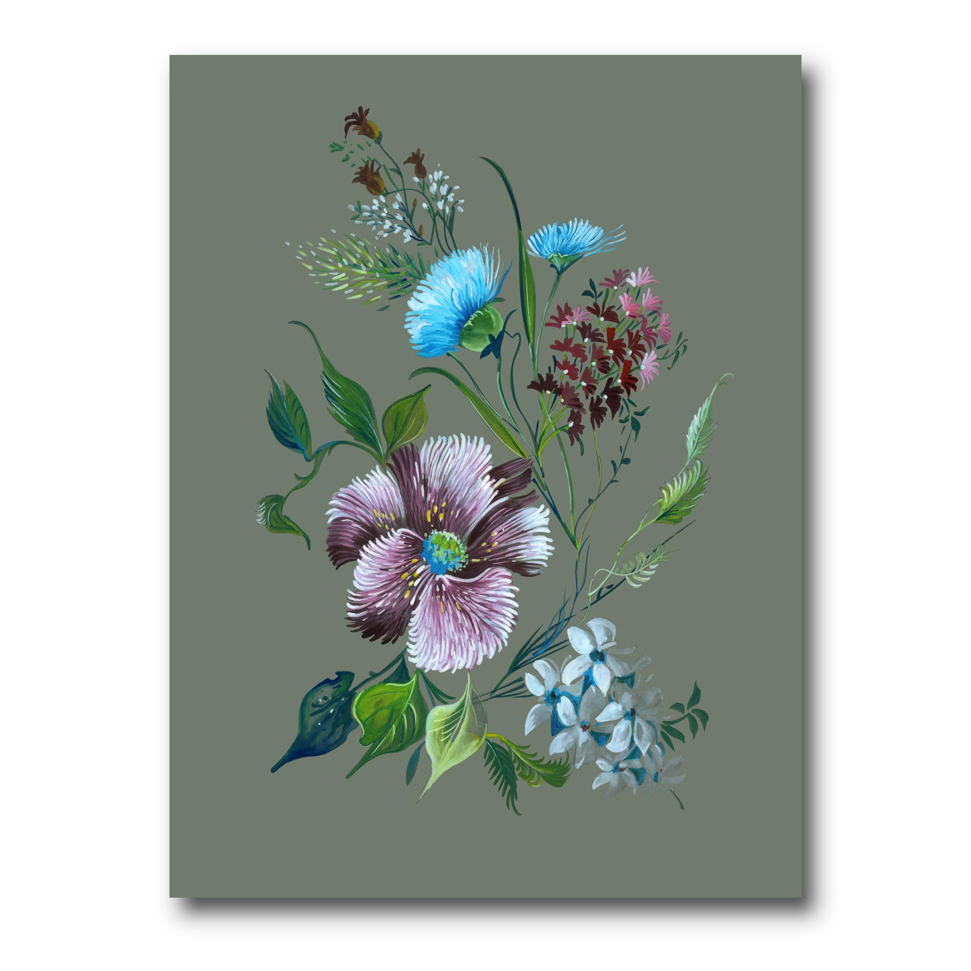 Designart - Purple and Turquoise Spring Flowers - Traditional Canvas Wall Art Print