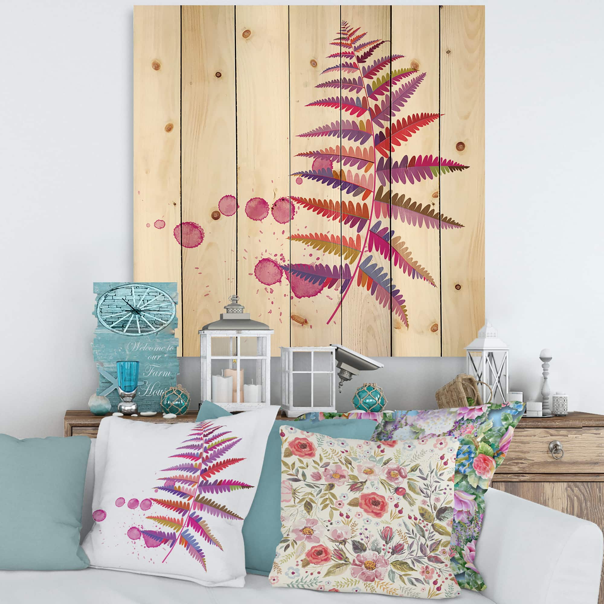 Designart - Purple Fern - Farmhouse Print on Natural Pine Wood