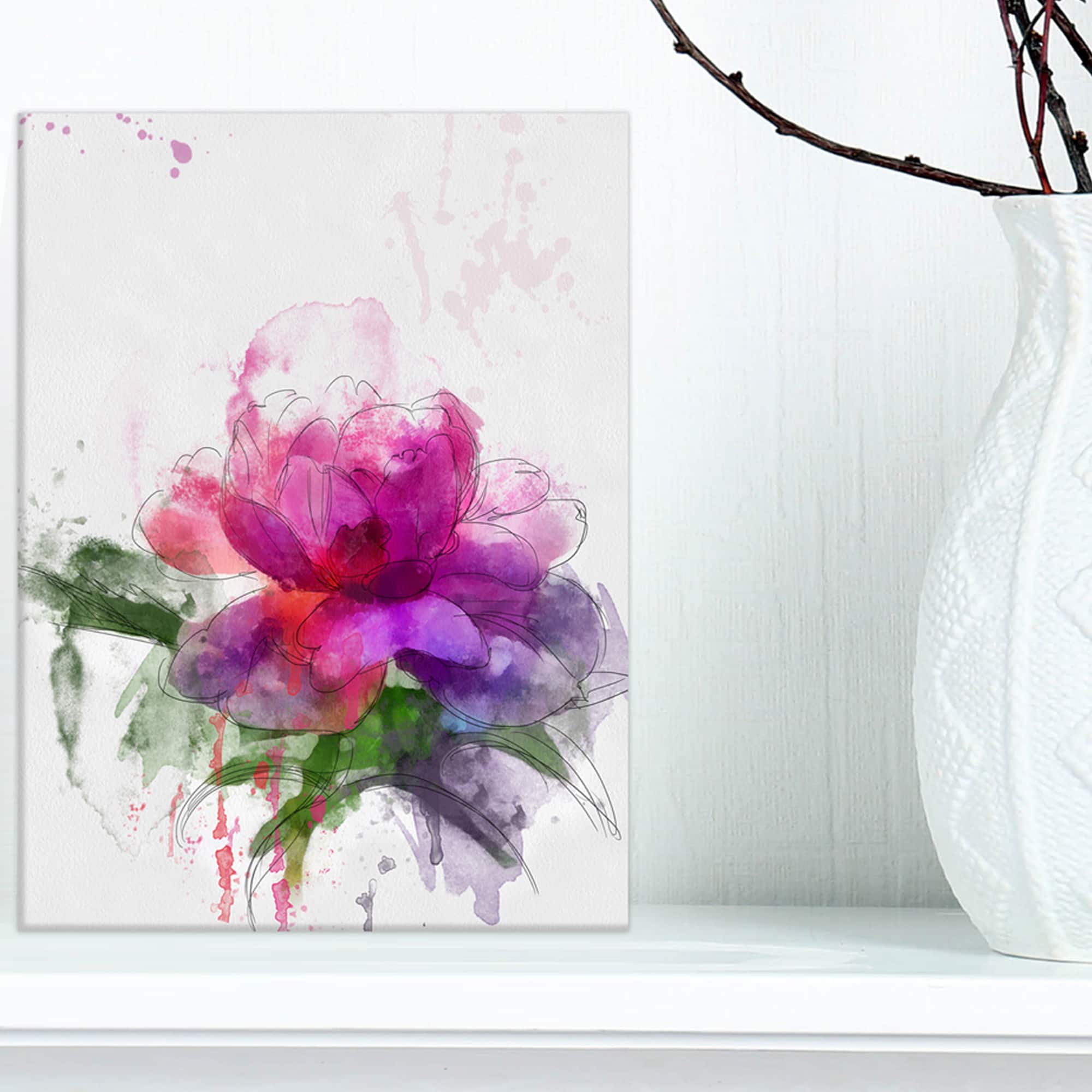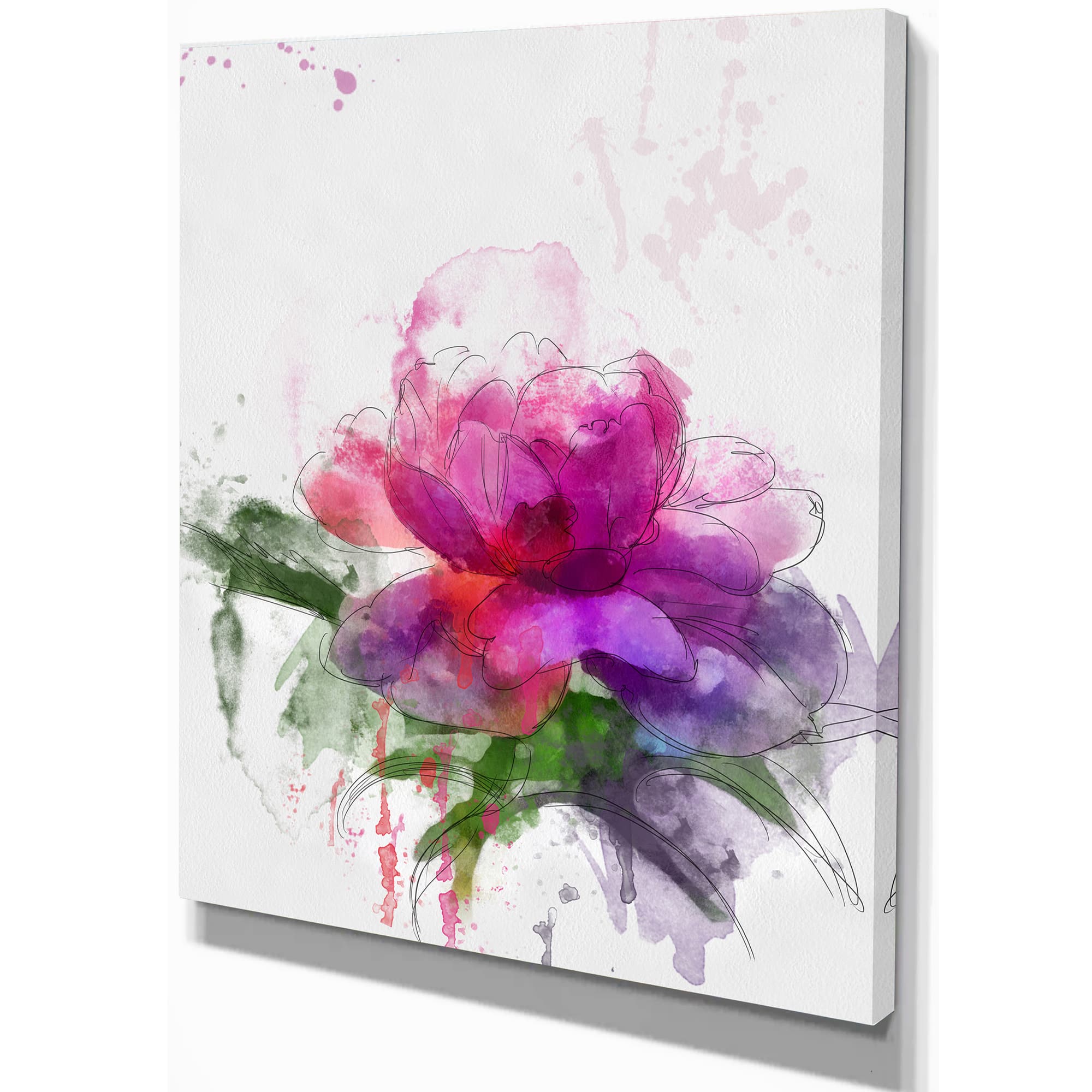 Designart - Purple Peony Sketch - Flowers Canvas Wall Artwork