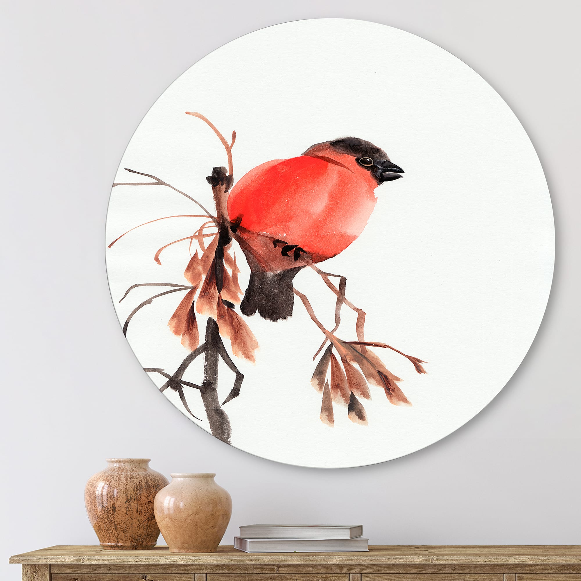 Designart - Red Bullfinch Bird On A Branch - Traditional Metal Circle Wall Art