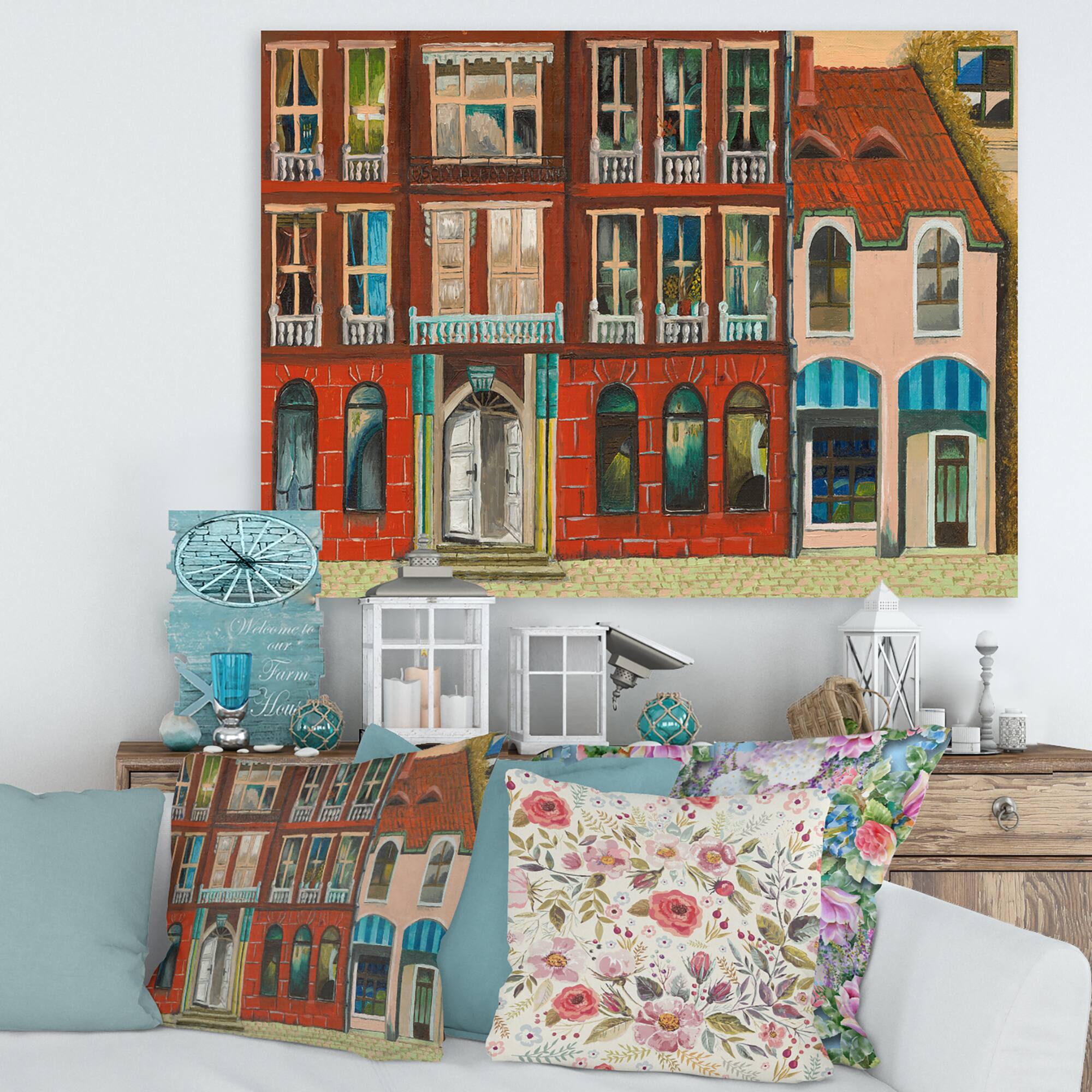 Designart - Red Facade of Shop In Paris I - French Country Canvas Wall Art Print