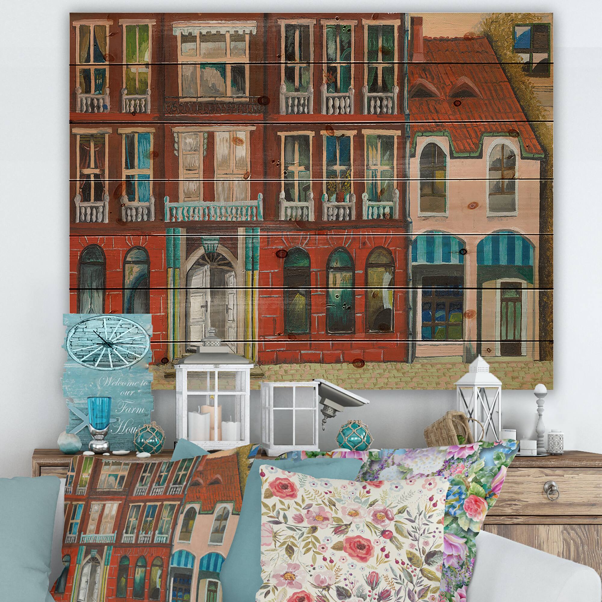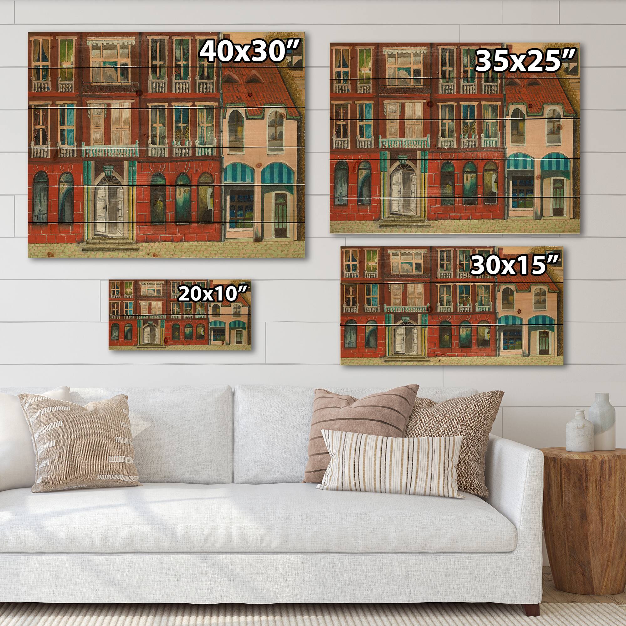 Designart - Red Facade of Shop In Paris I - French Country Print on Natural Pine Wood