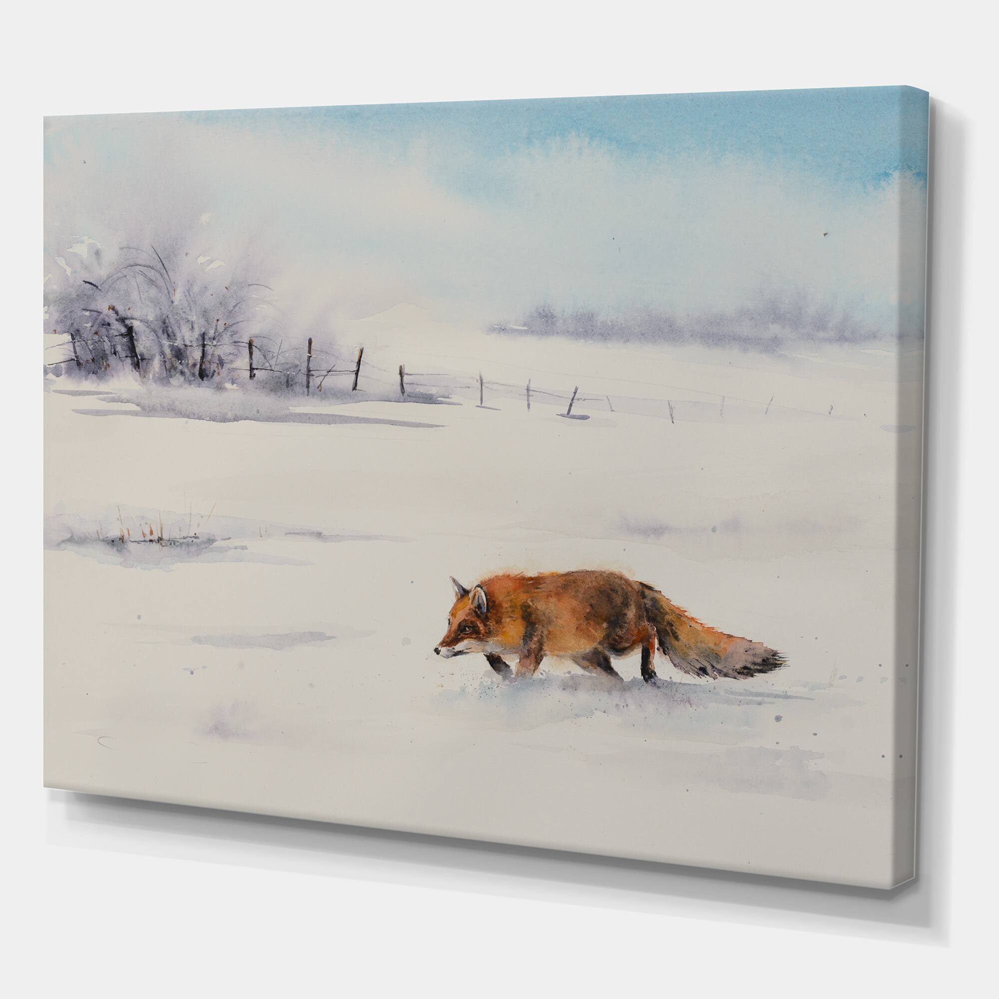 Designart - Red Fox Running In White Snow I - Farmhouse Canvas Wall Art Print