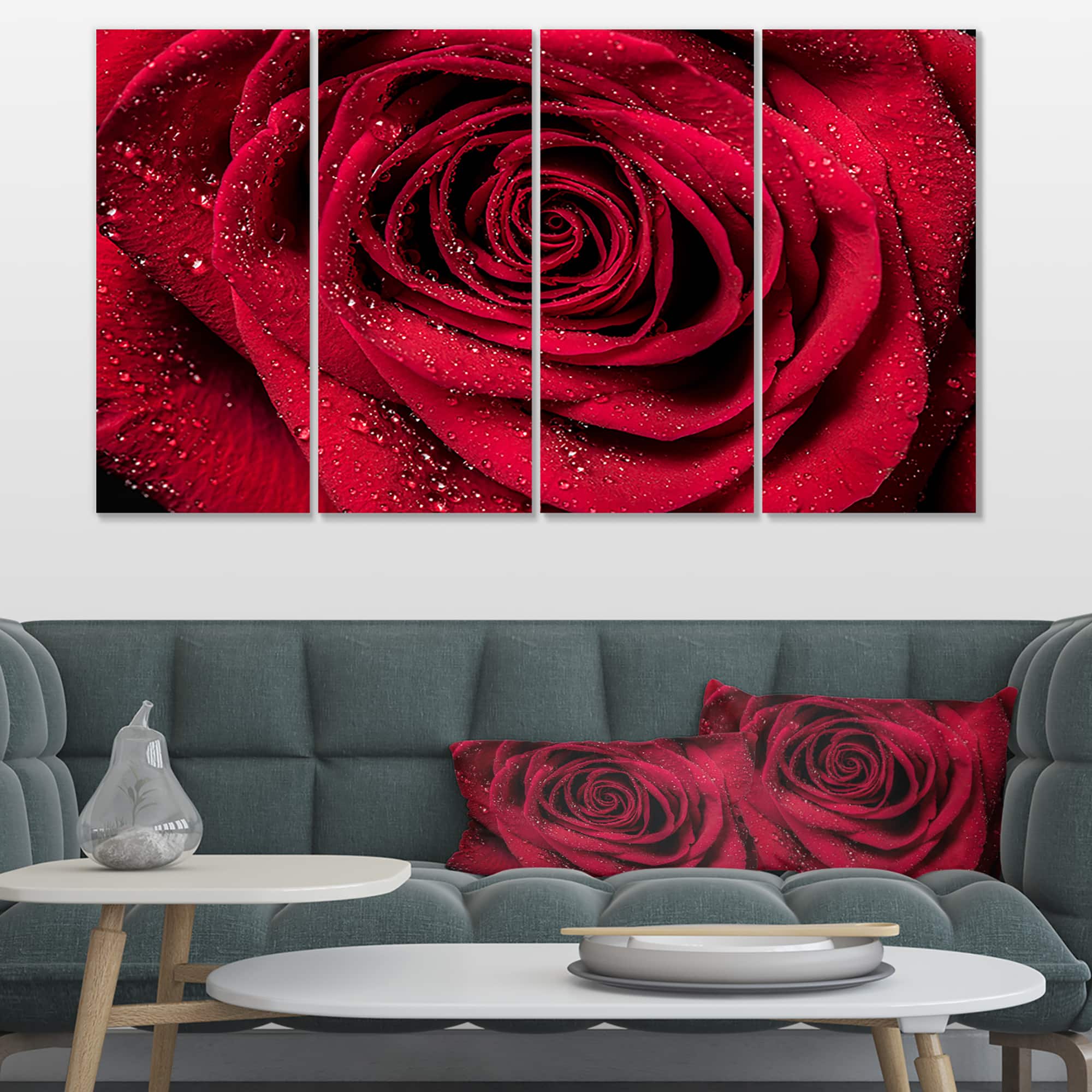 Designart - Red Rose Petals with Rain Droplets - Floral Art Canvas Print