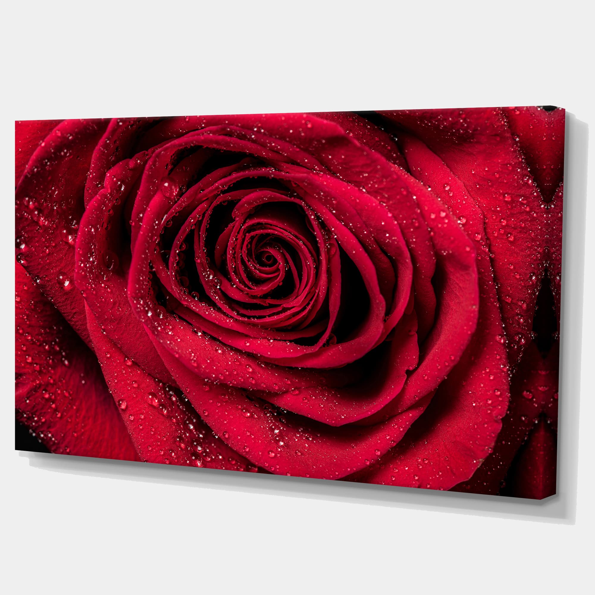 Designart - Red Rose Petals with Rain Droplets - Floral Art Canvas Print