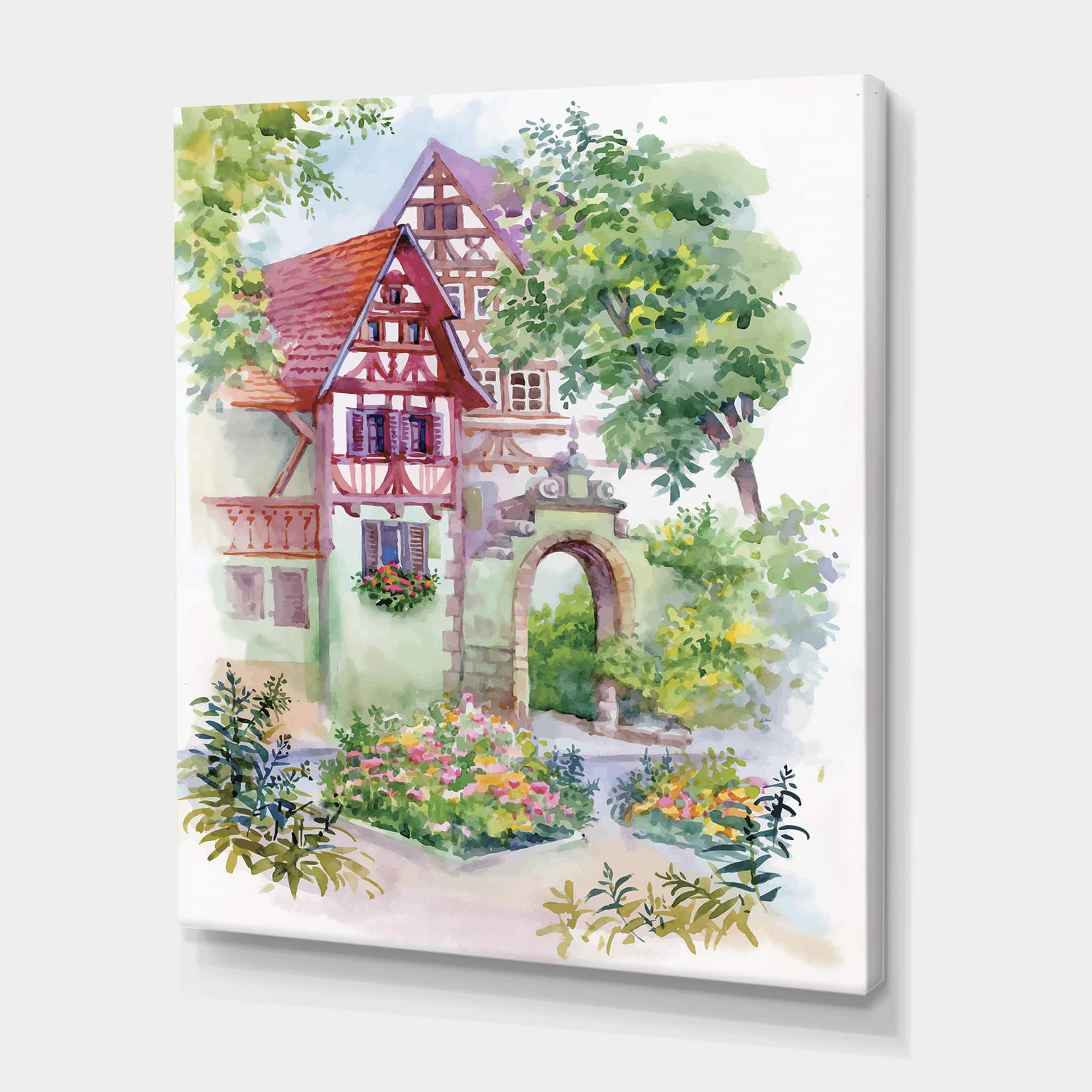 Designart - Red Rustic House In The Country Side - Traditional Canvas Wall Art Print