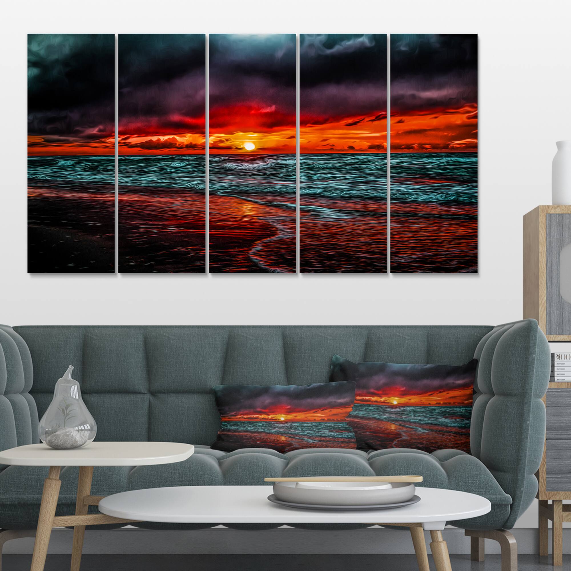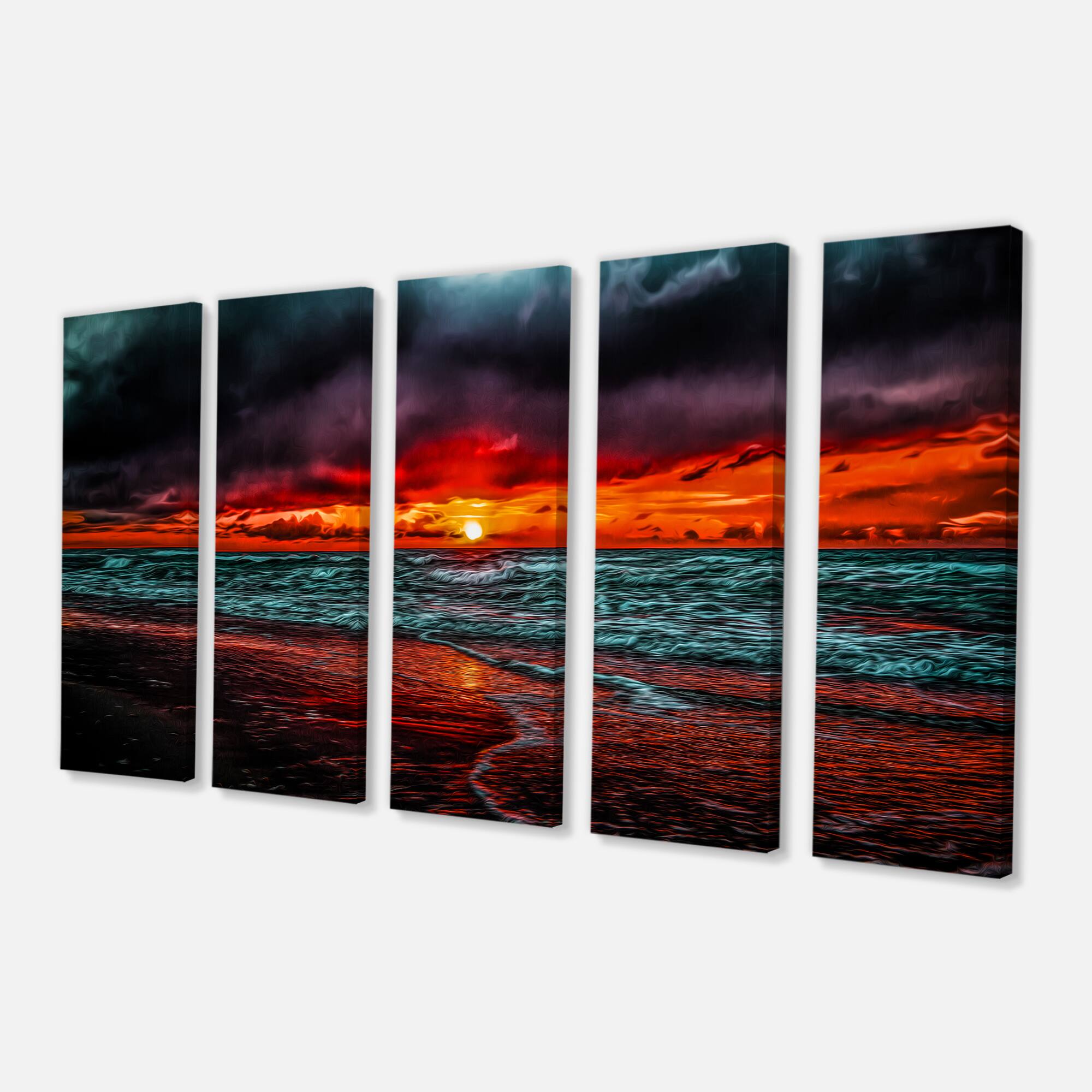 Designart - Red Sunset over Blue Waters - Seascape Canvas Art Print