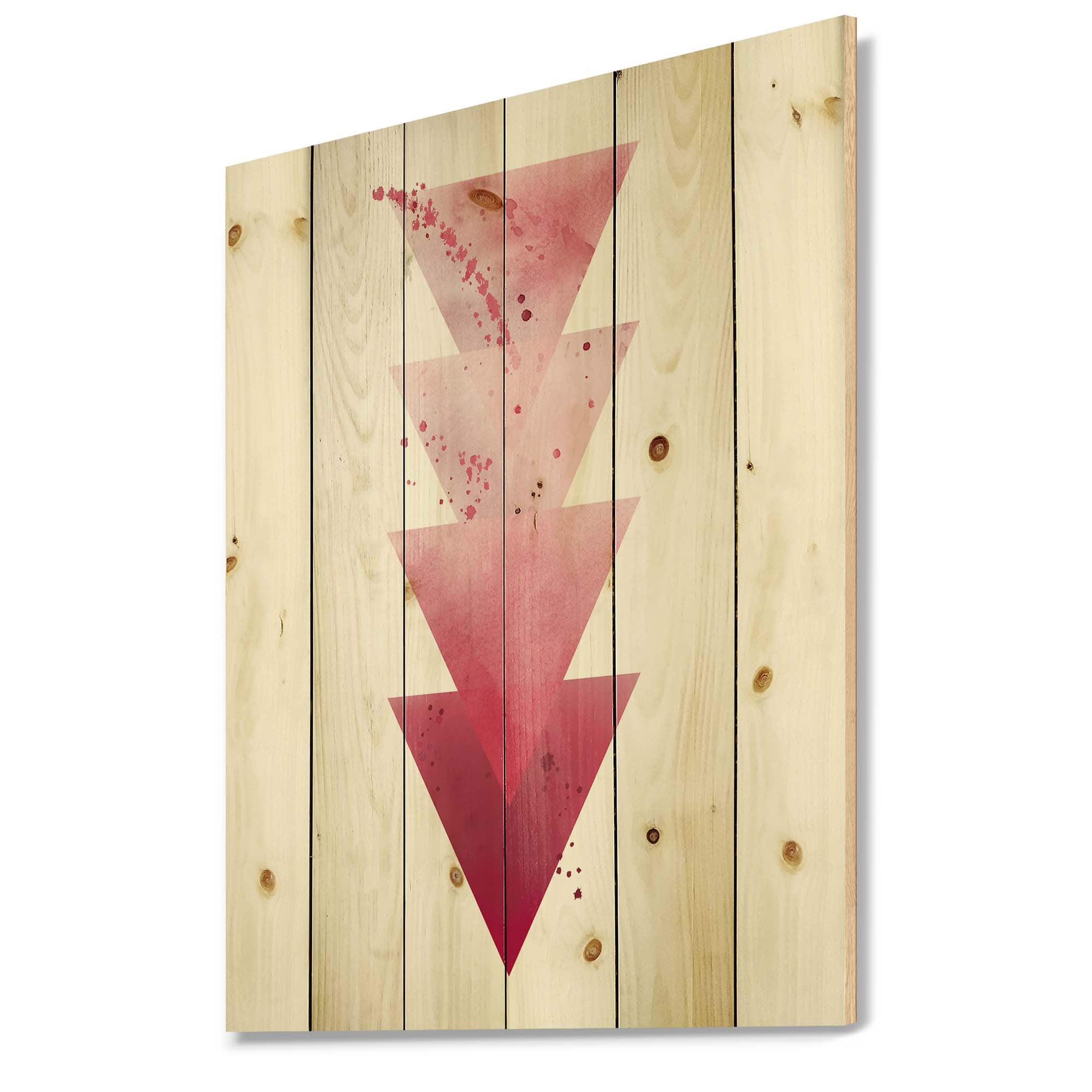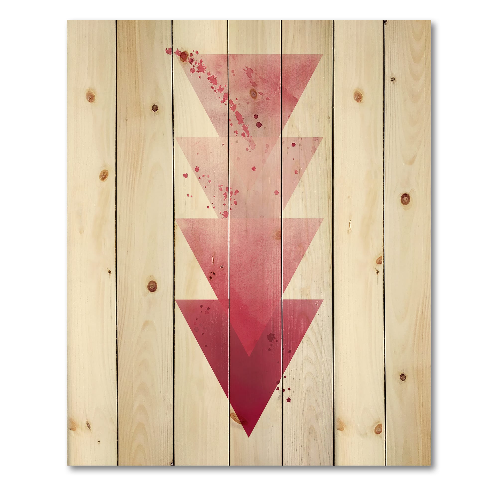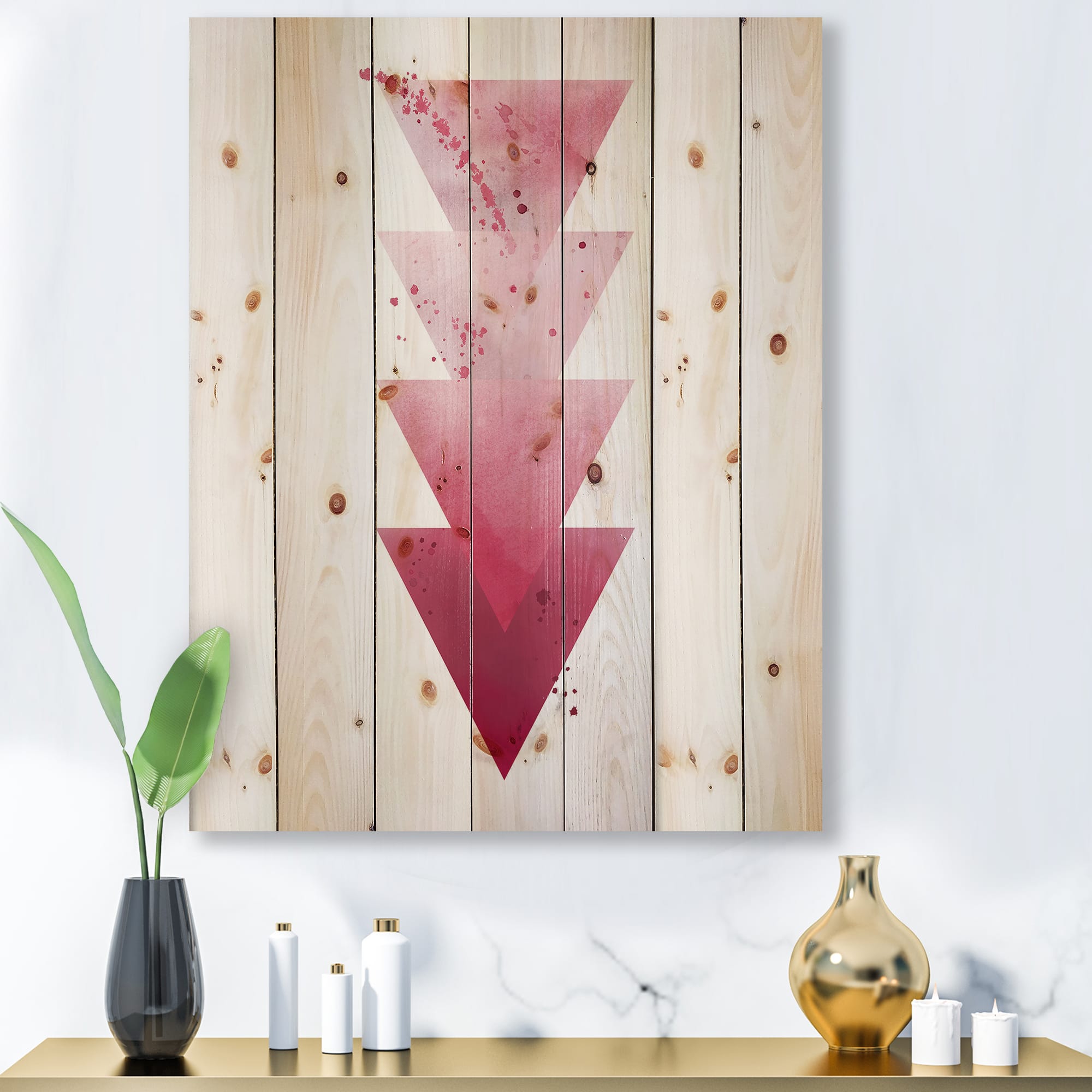 Designart - Red Triangles Abstract Geometric Art Composition - Modern Print on Natural Pine Wood