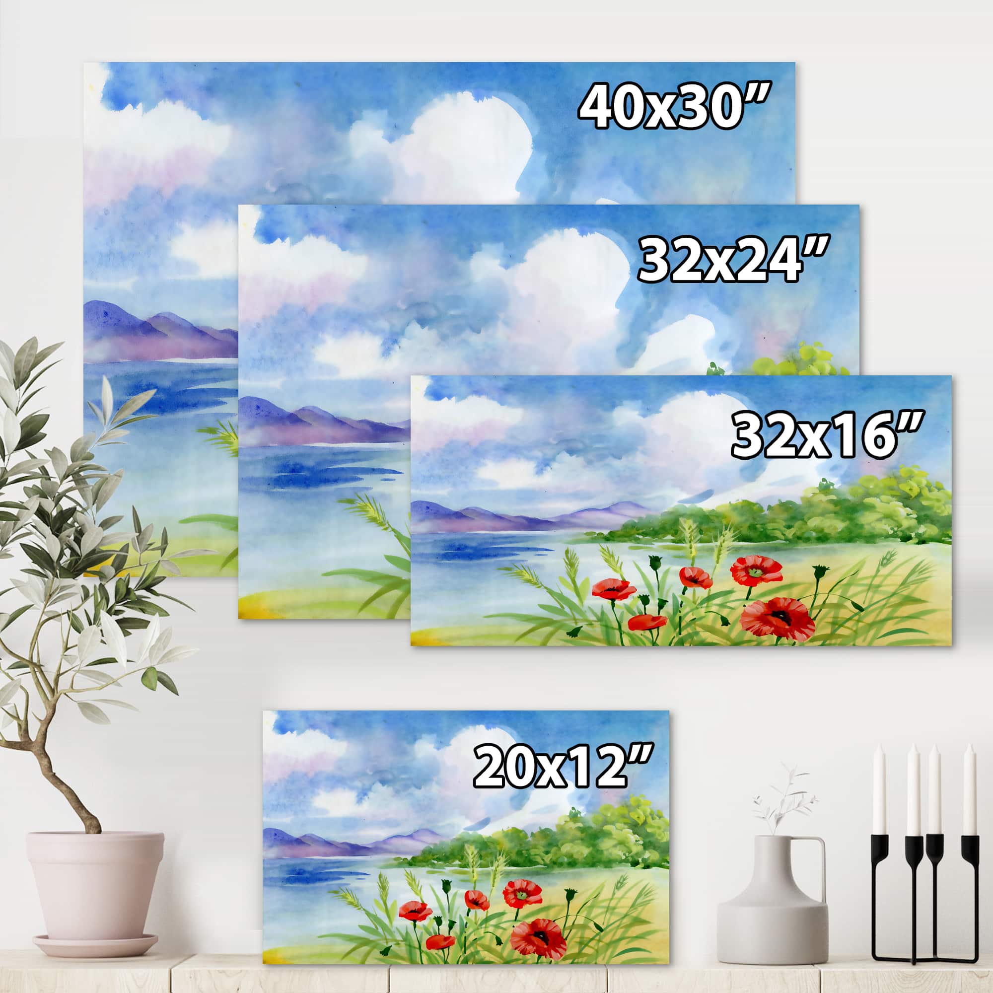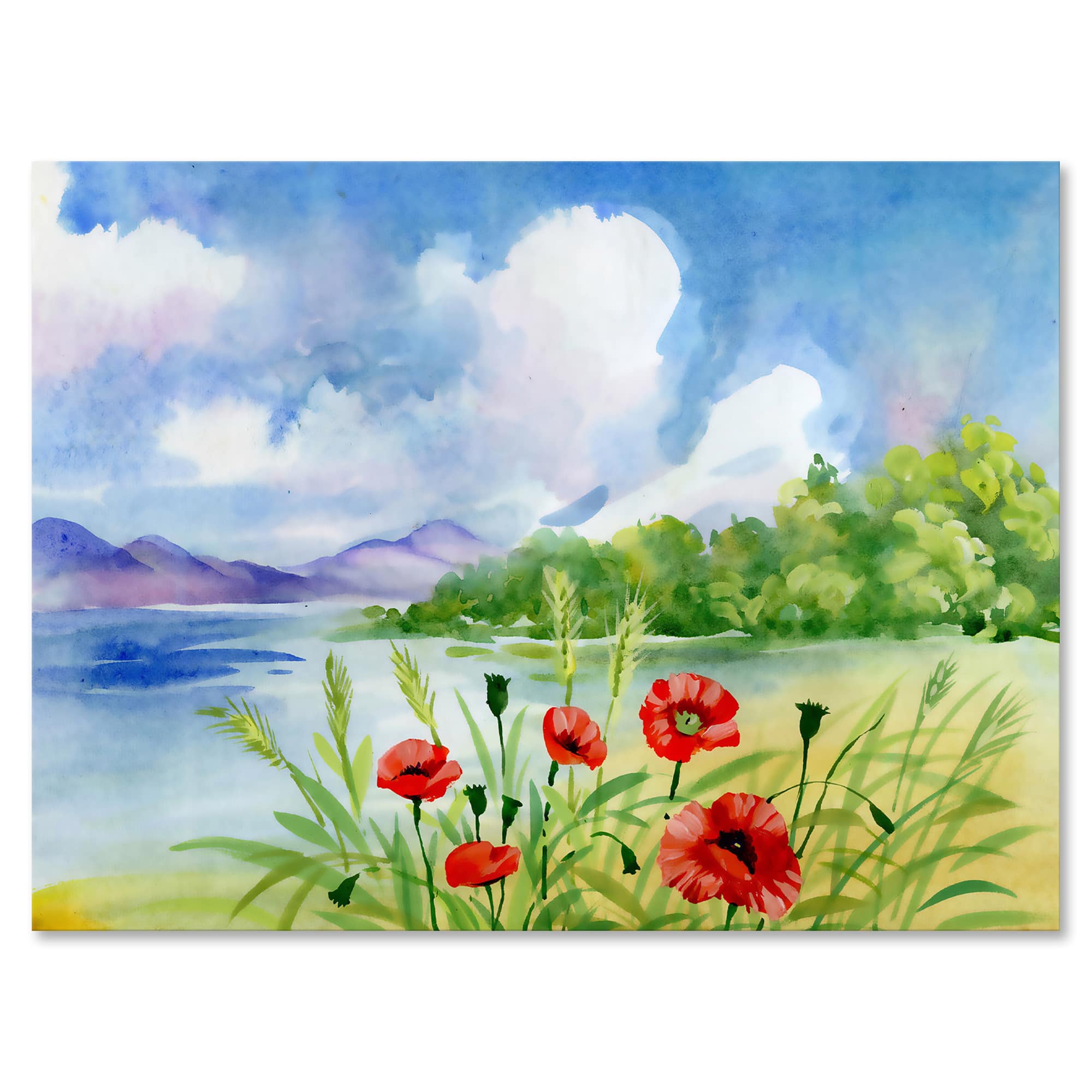 Designart - Red Tulips On The Bank Near A Mountain River - Lake House Canvas Wall Art Print