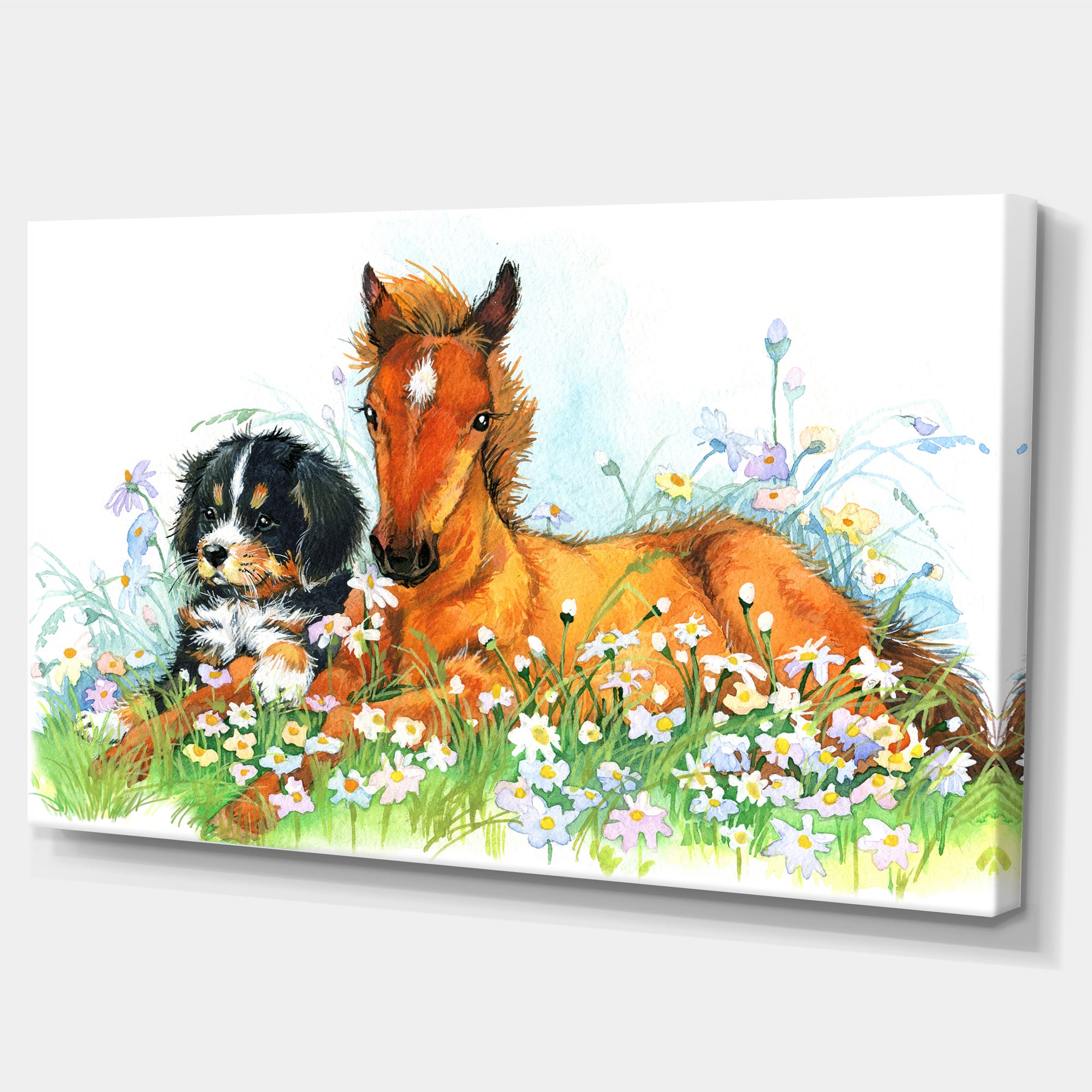 Designart - Relaxing Brown Cute Horse - Animal Canvas Art Print