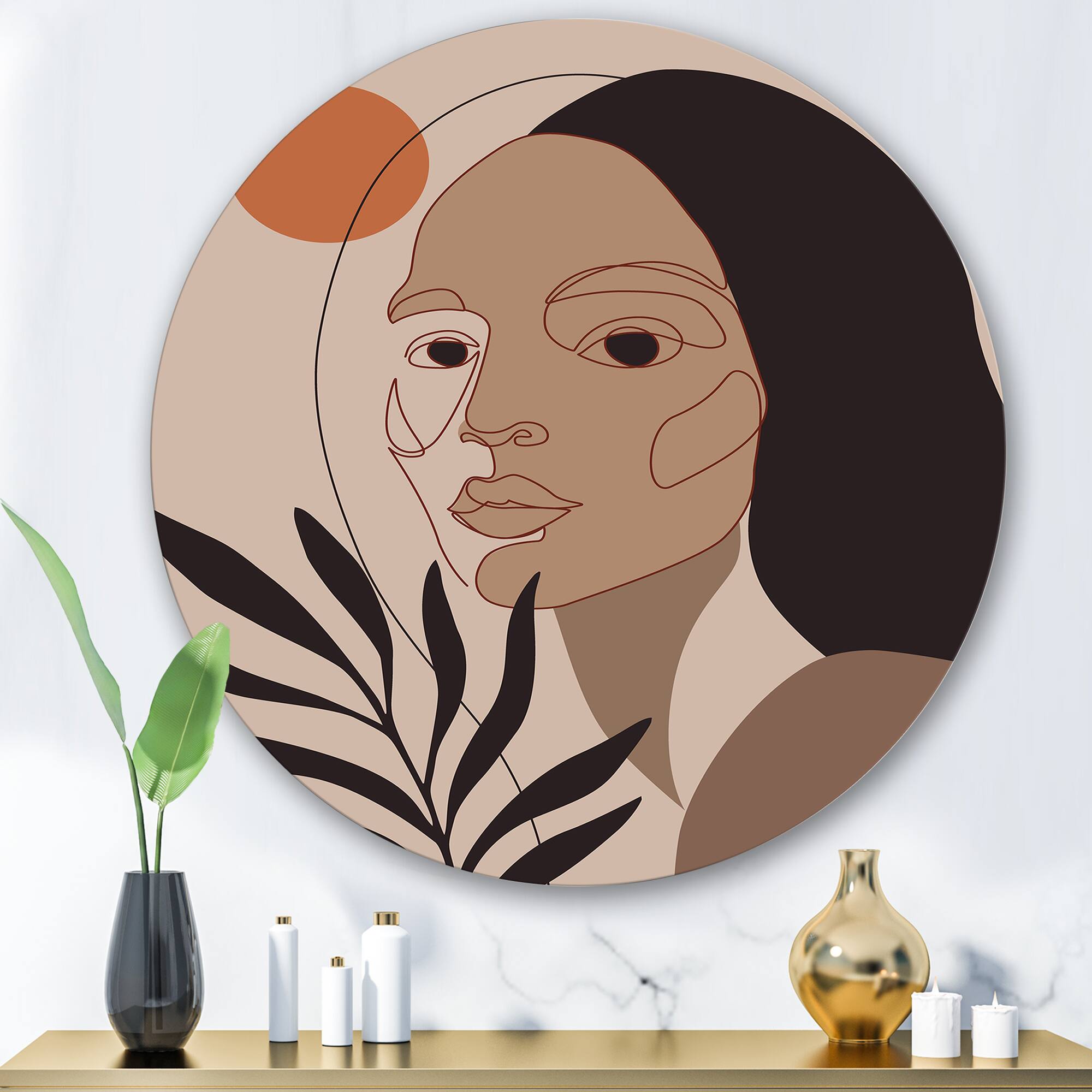 Designart - Retro Minimal Portrait of Young Woman - Modern Metal Circle Wall Art