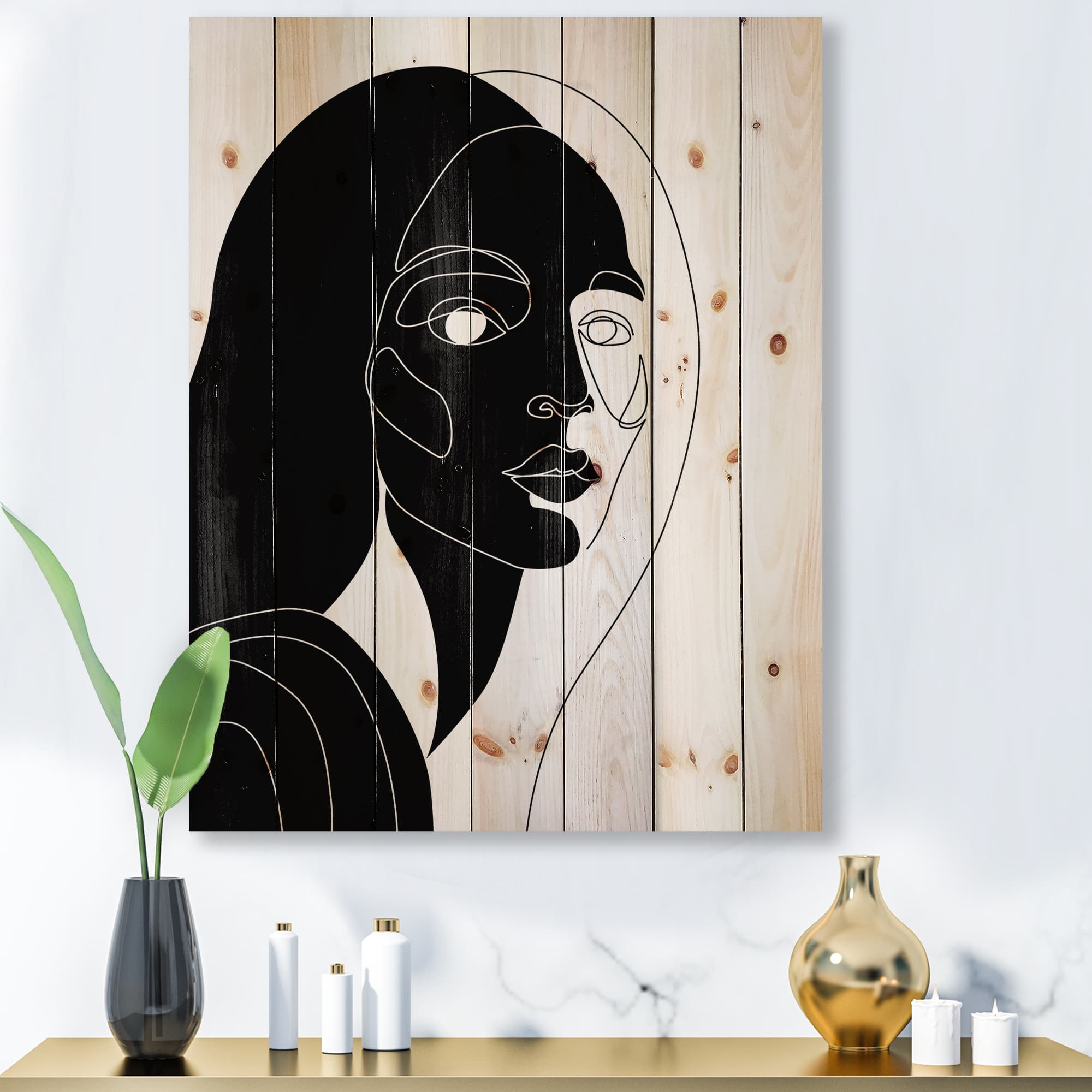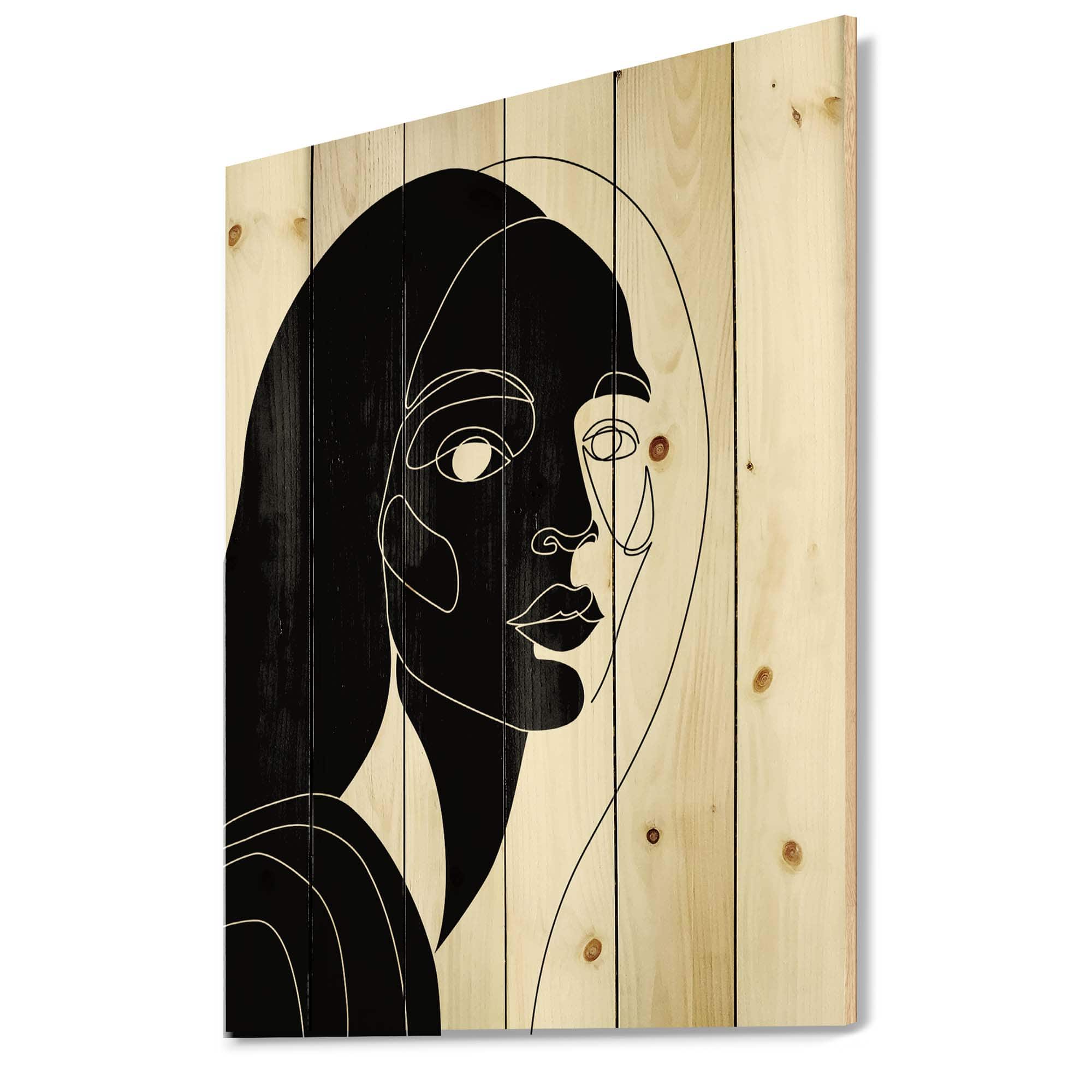 Designart - Retro Monochrome Minimal Portrait of Young Woman - Modern Print on Natural Pine Wood
