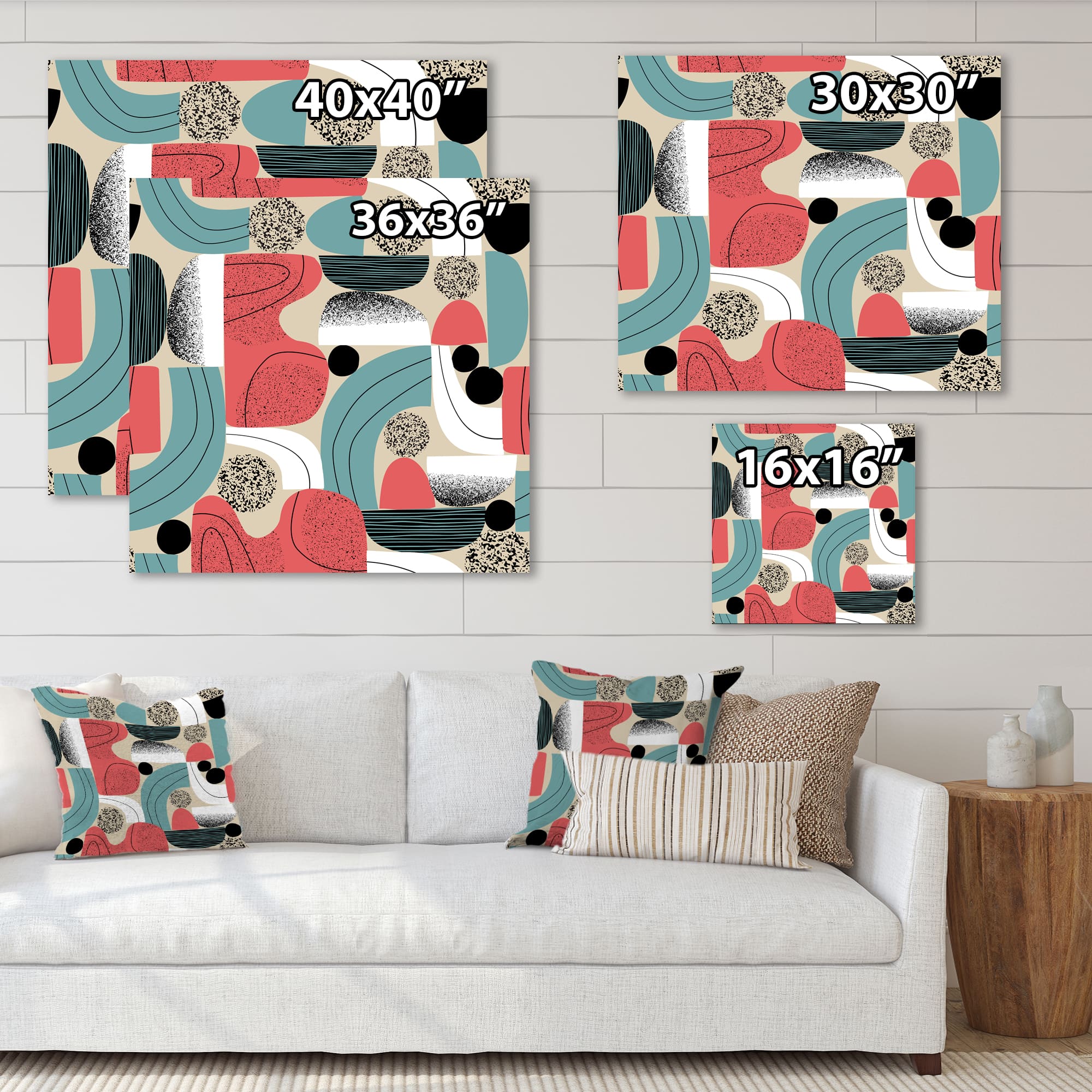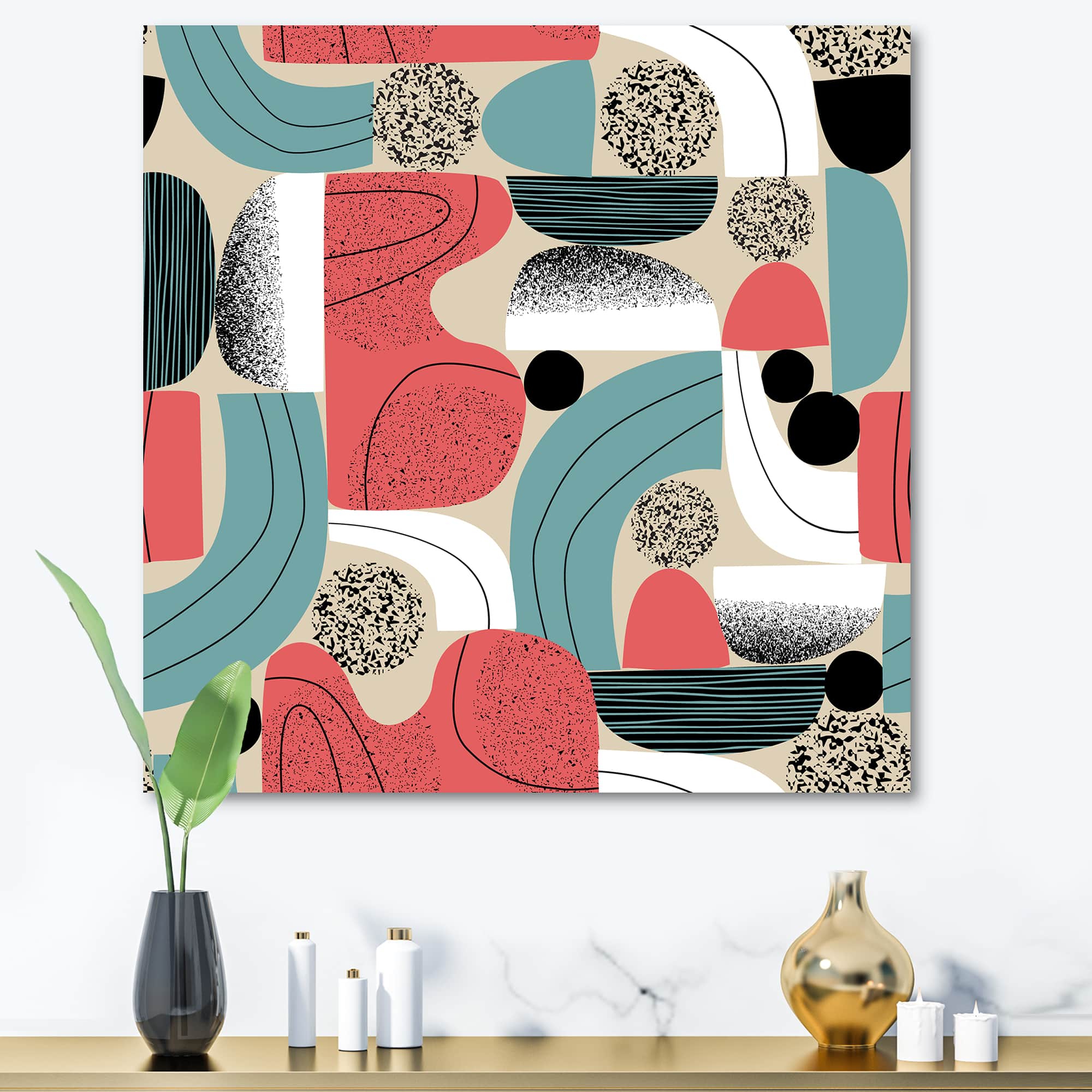 Designart - Retro Shapes With Abstract Suns and Moons III - Modern Canvas Wall Art Print