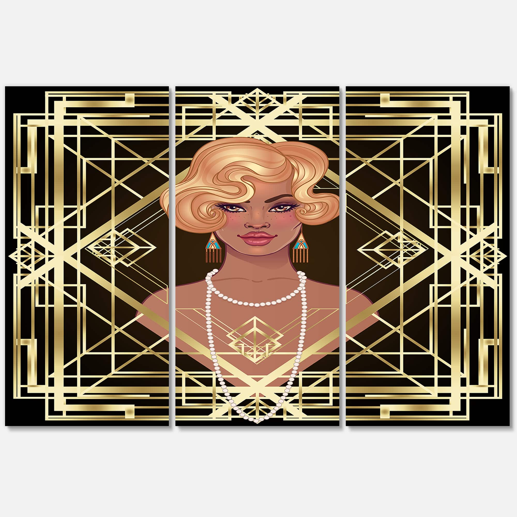 Designart - Retro Women In Golden Art Deco Geometrics III - Modern Canvas Wall Art Print