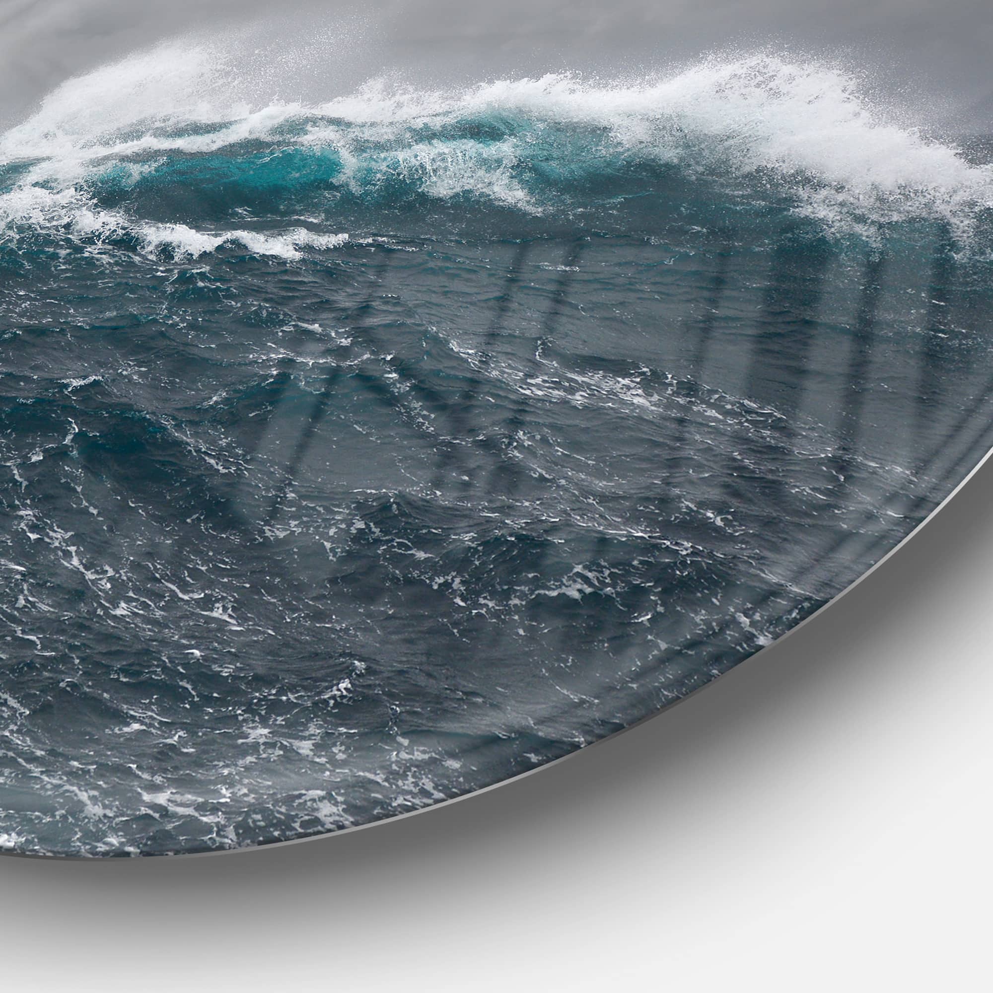 Designart - Roaring Waves under Cloudy Sky' Disc Seascape Circle Metal Wall Art