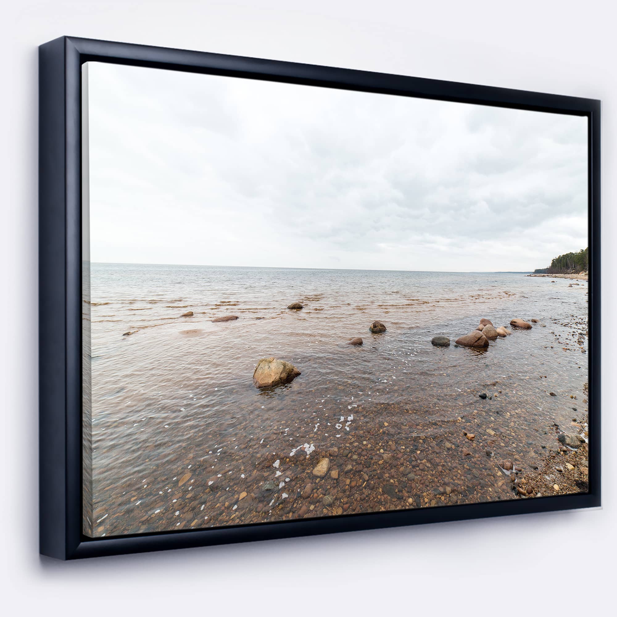 Designart - Rocky Autumn Beach - Seashore Photography Canvas Print in Black Frame