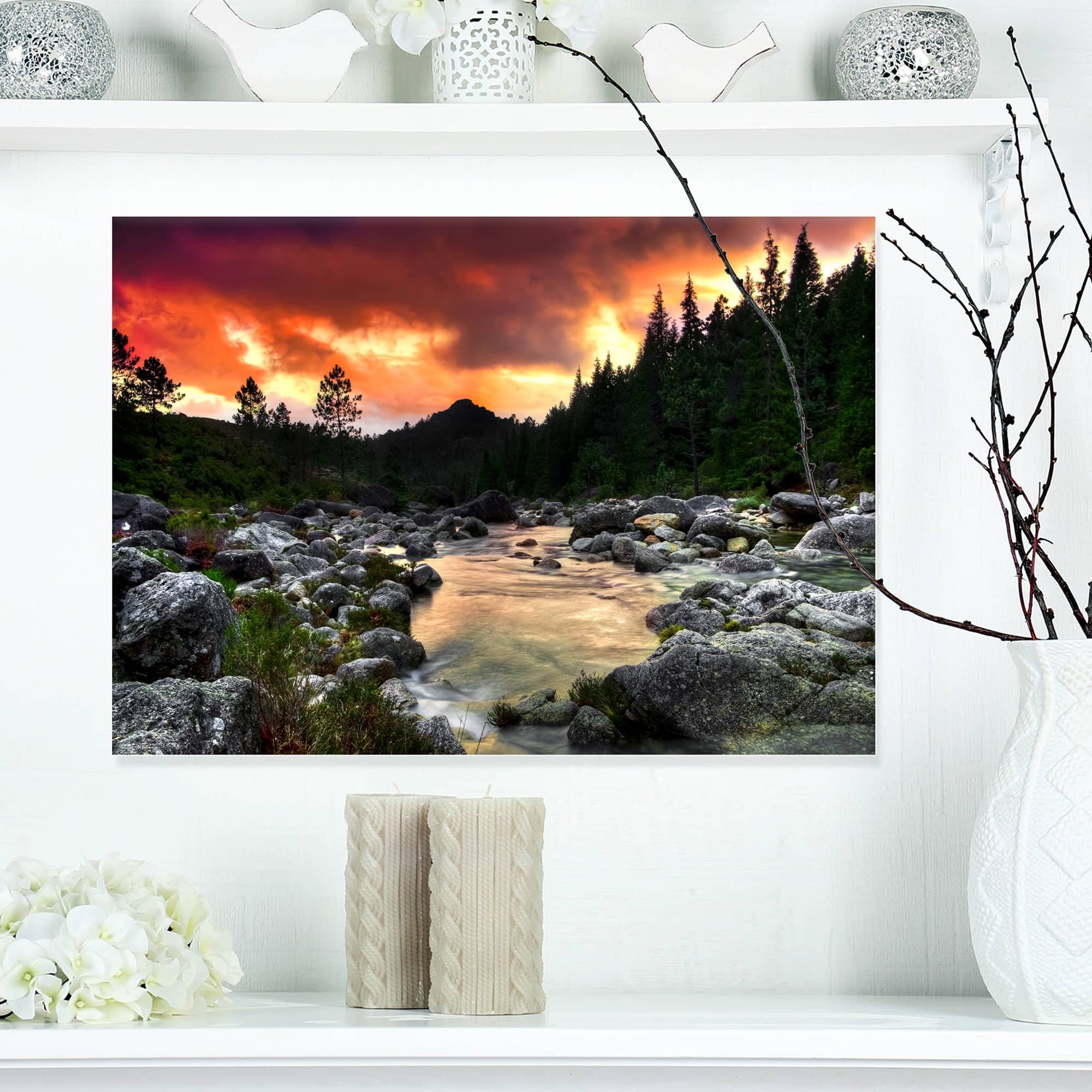 Designart - Rocky Mountain River at Sunset - Extra Large Wall Art Landscape