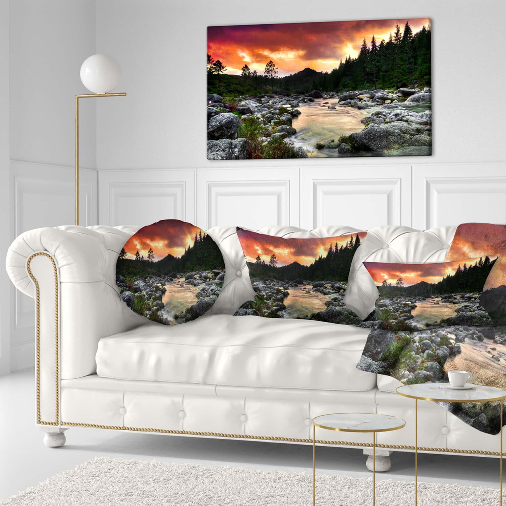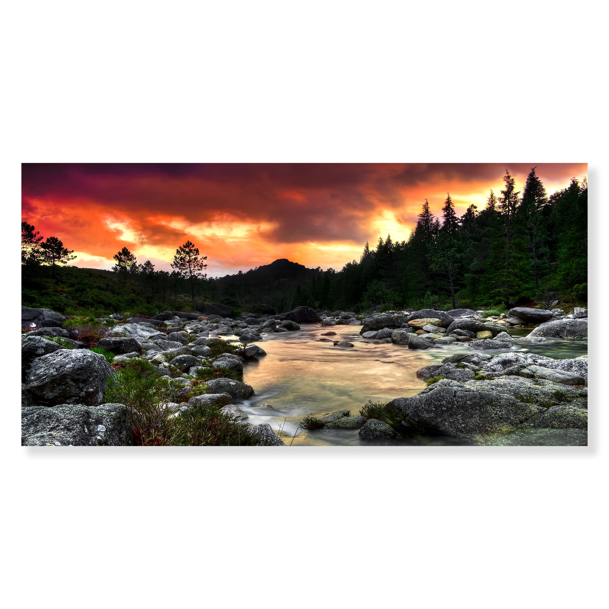 Designart - Rocky Mountain River at Sunset - Extra Large Wall Art Landscape