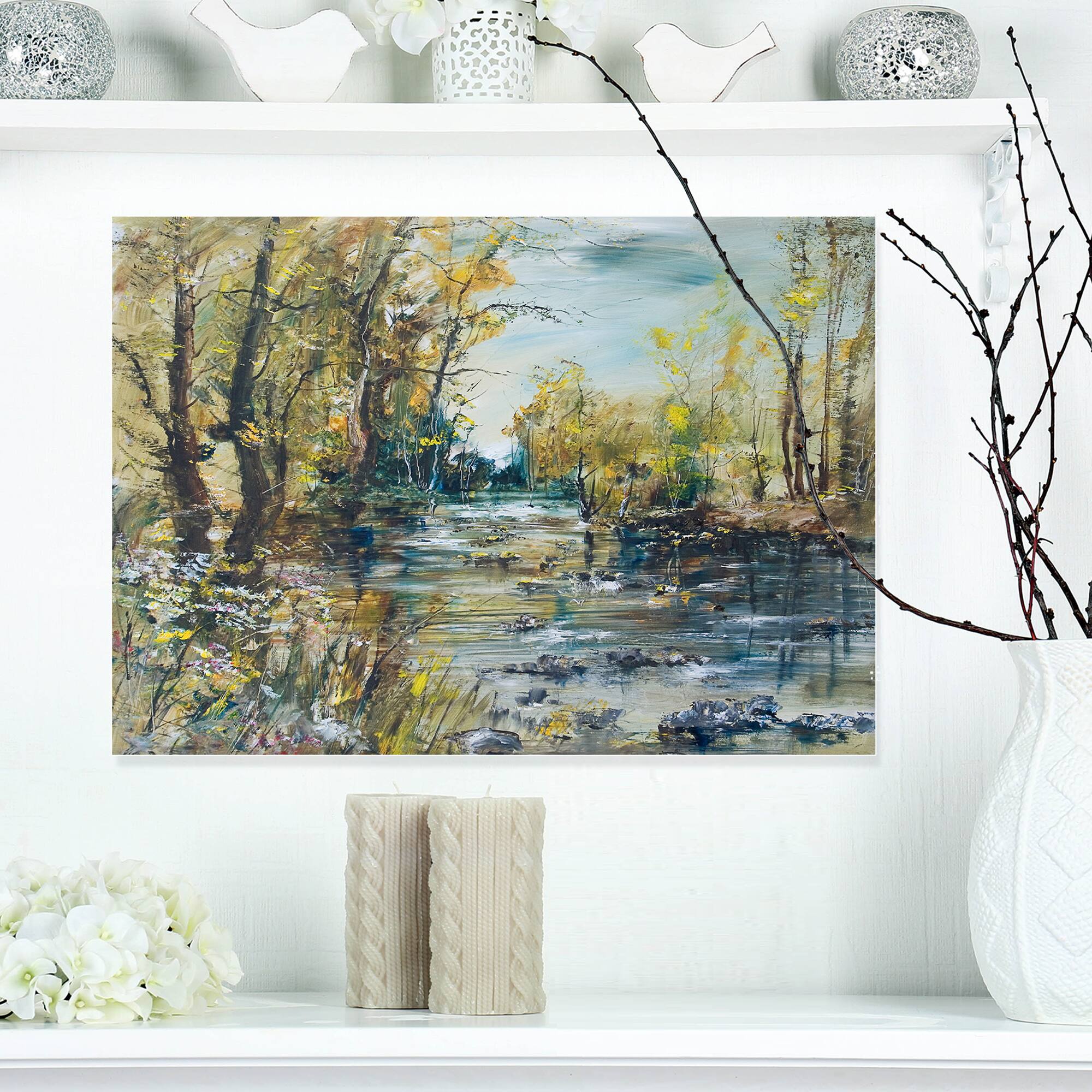 Designart - Rocky River in the Forest - Landscapes Painting Print on Wrapped Canvas