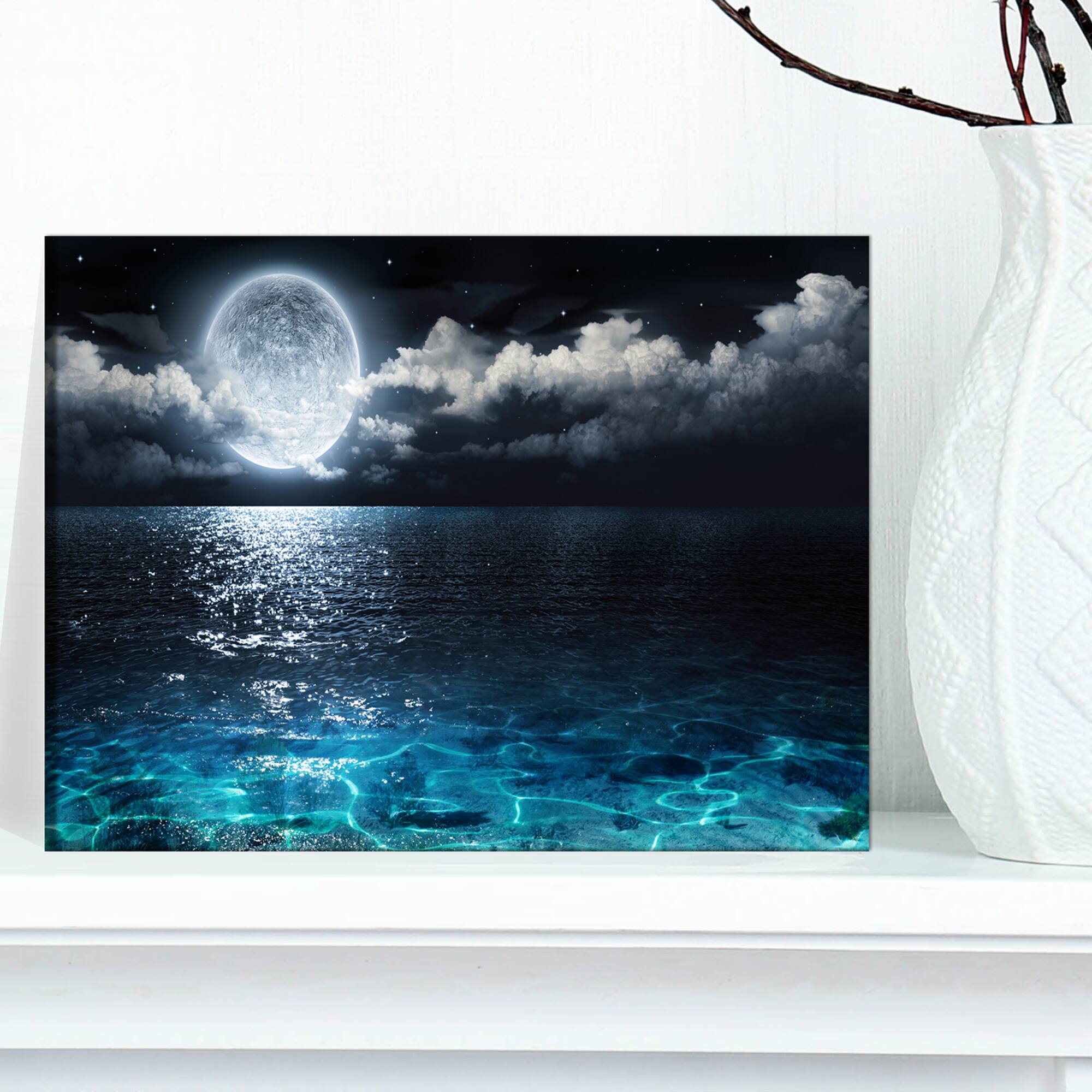 Designart - Romantic Full Moon Over Sea - Seascape Canvas Art Print