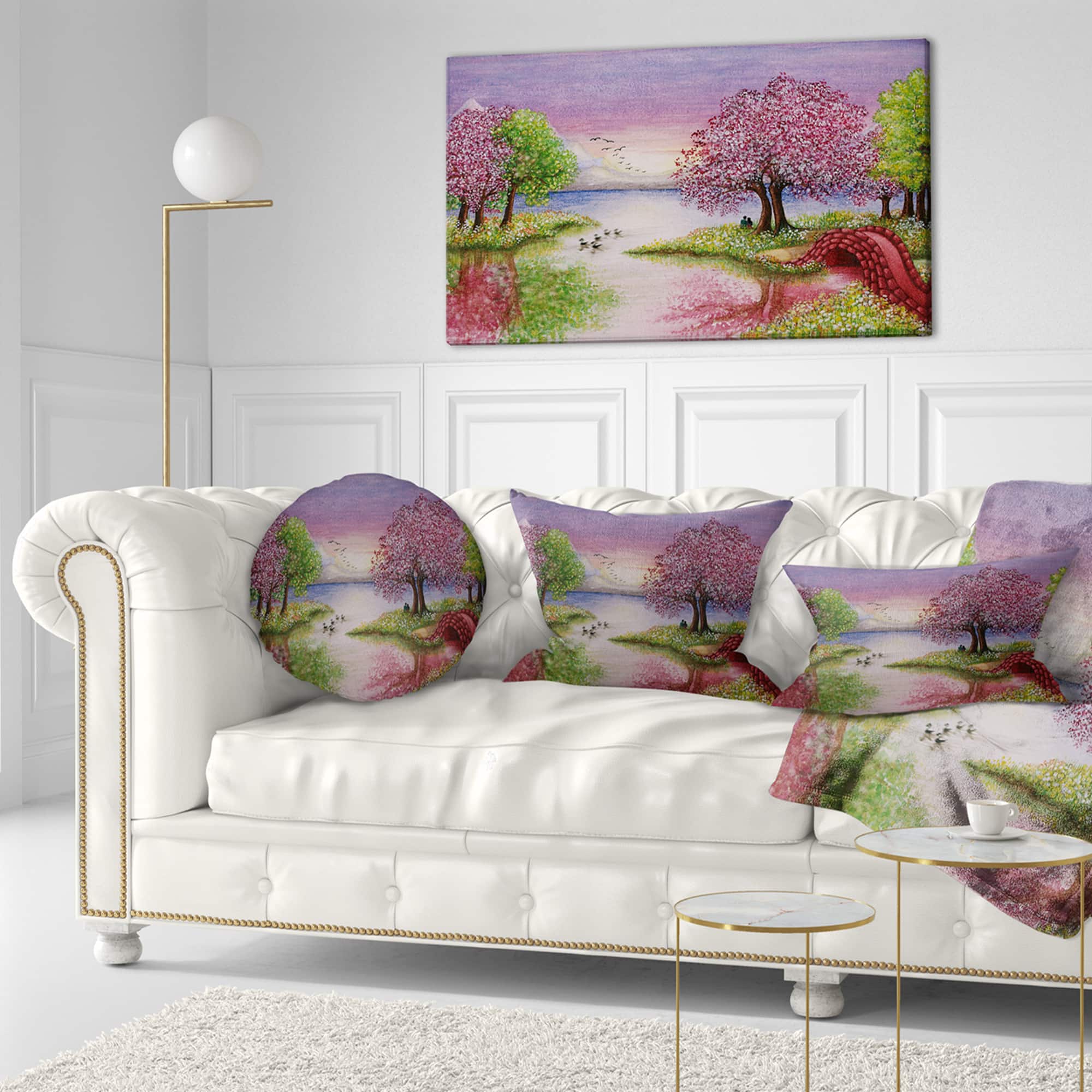 Designart - Romantic Lake in Pink and Green - Extra Large Wall Art Landscape