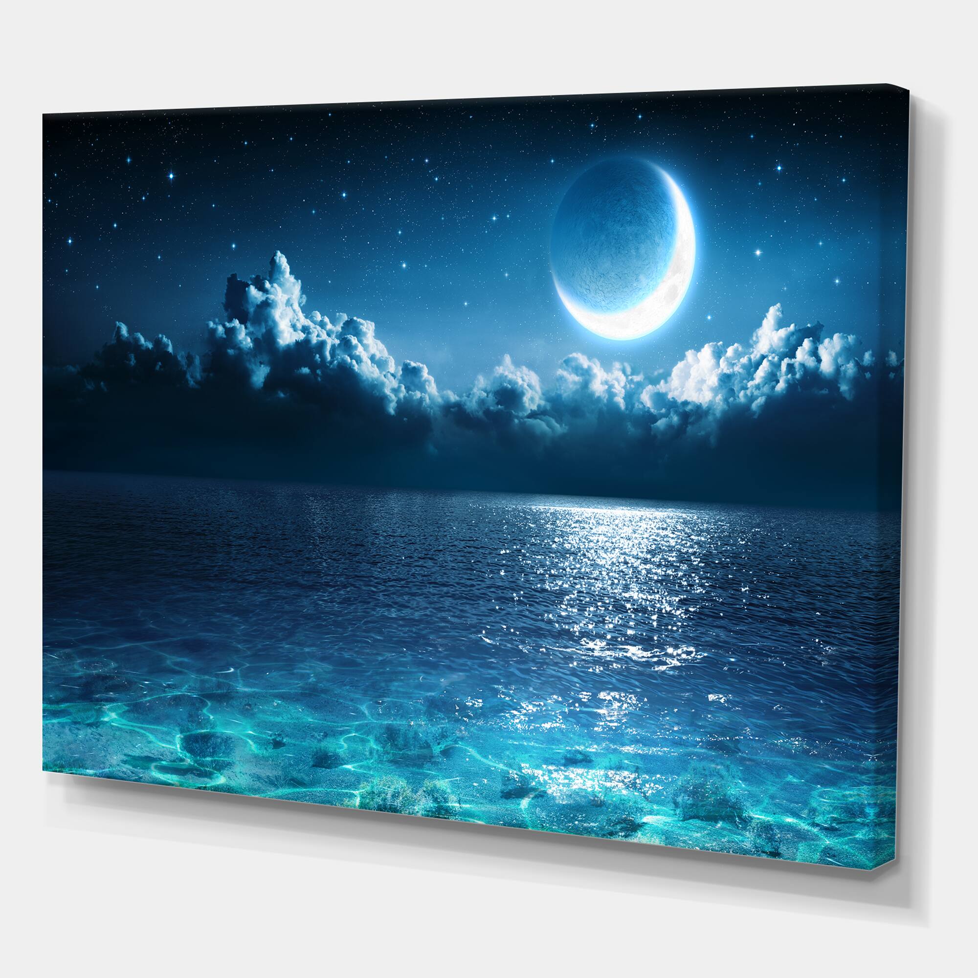 Designart - Romantic Moon Over Deep Blue Sea I - Nautical & Coastal Canvas Wall Art Print