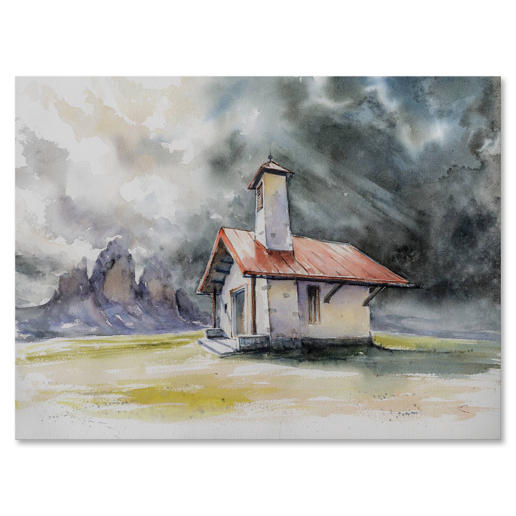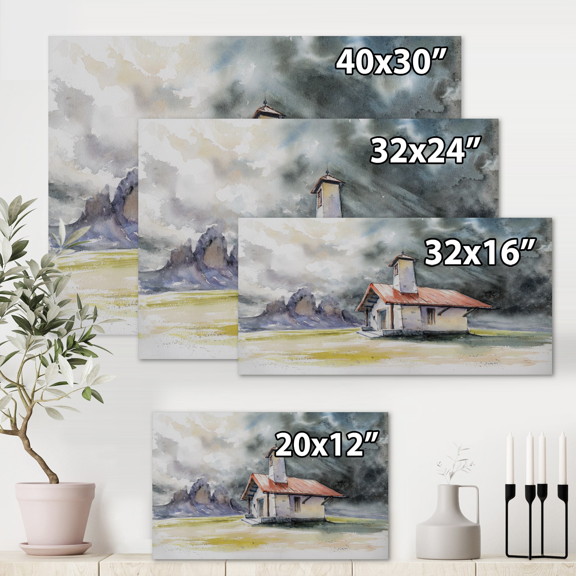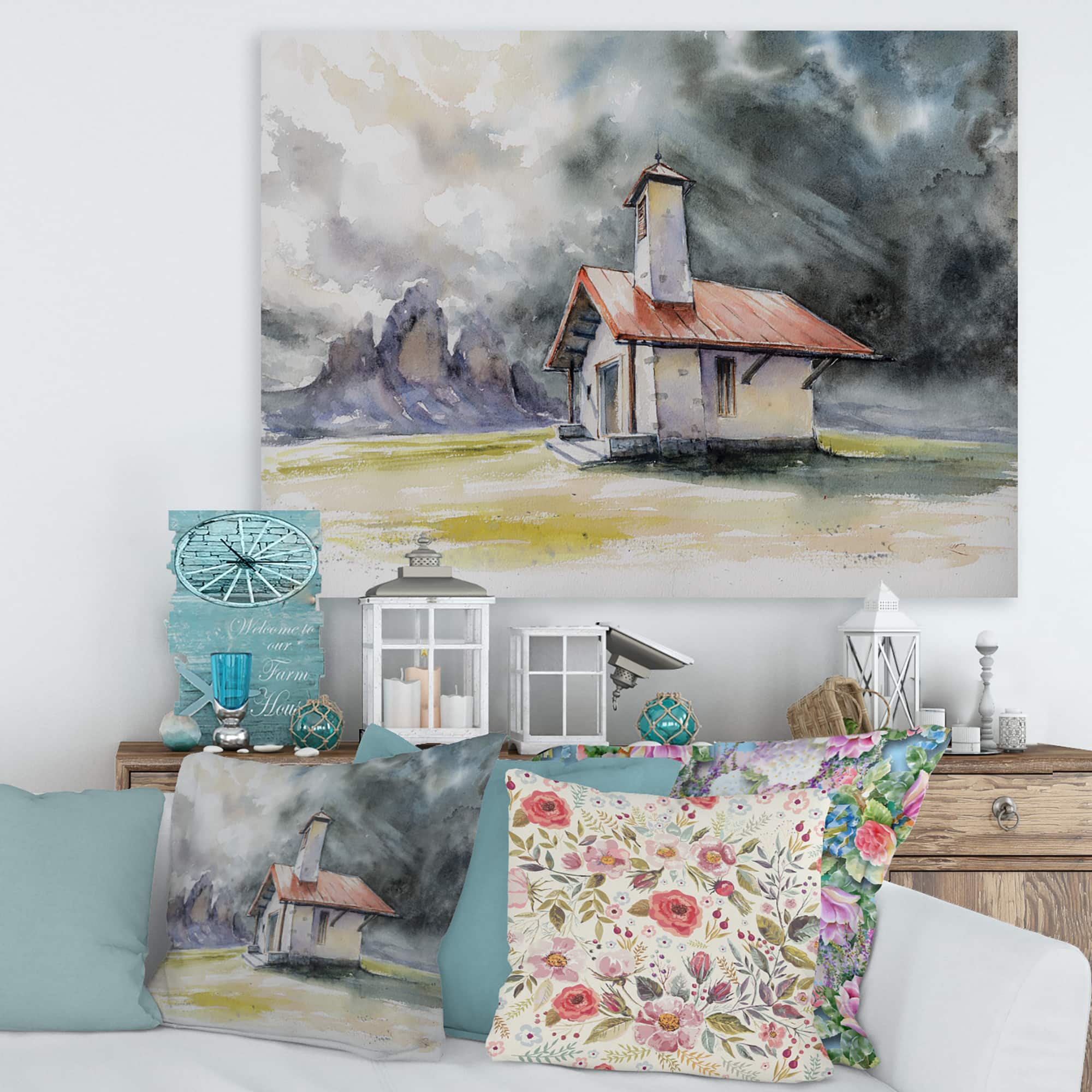 Designart - Rustic House On Mountain Top During Storm - Country Canvas Wall Art Print