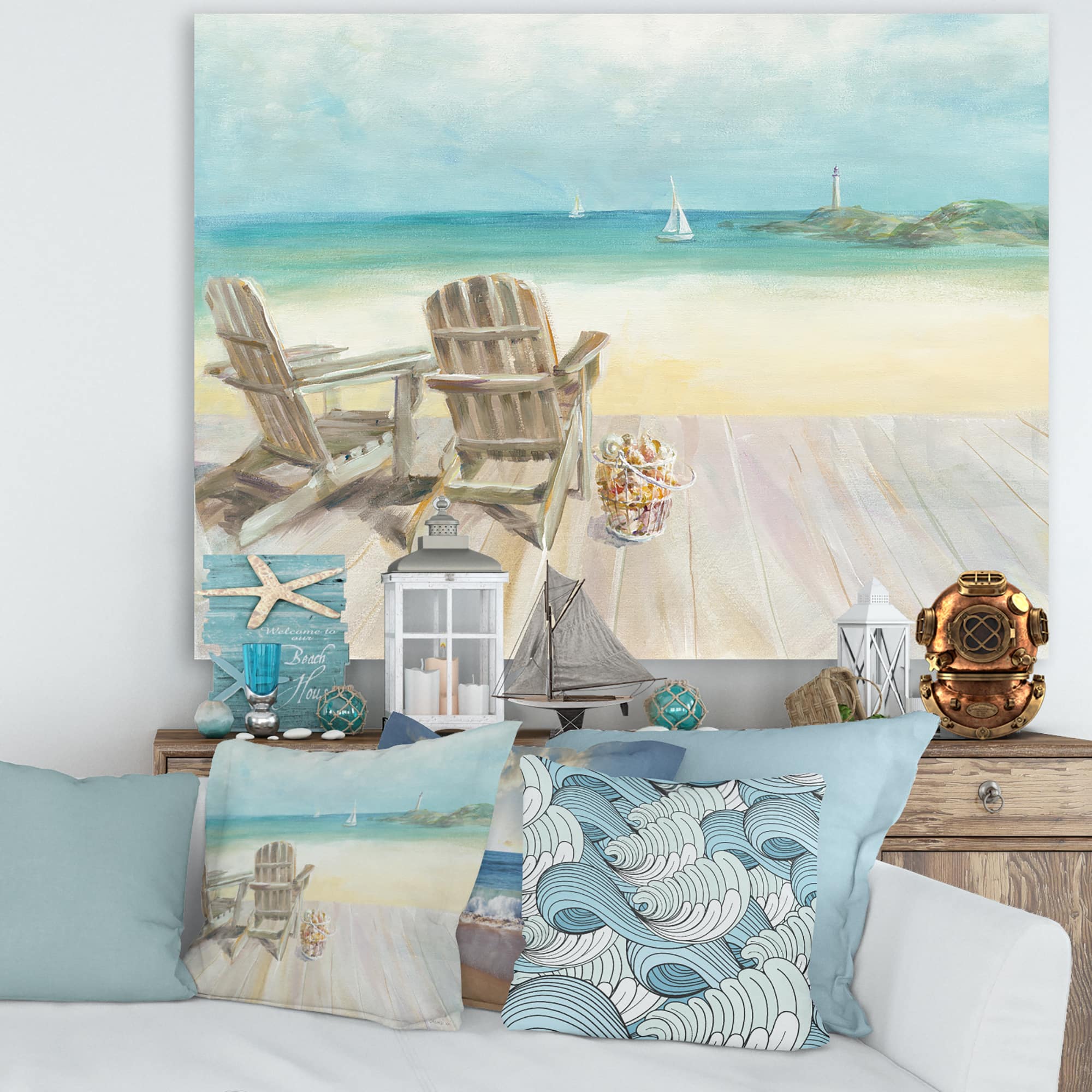 Designart - Seaside Morning no Window - Coastal Gallery-wrapped Canvas