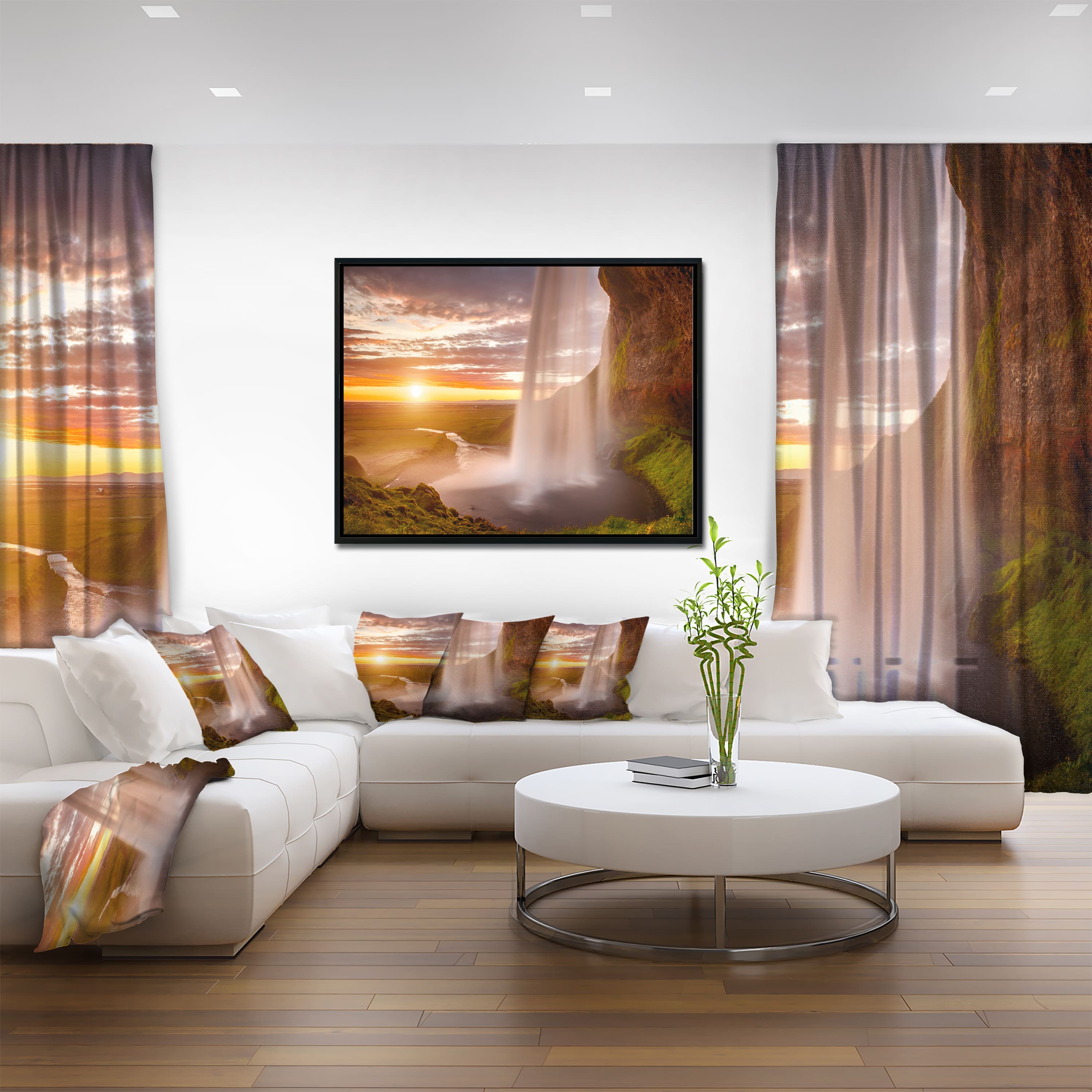 Designart - Seljalandsfoss Waterfall at Sunset - Landscape Photography Framed Canvas Print