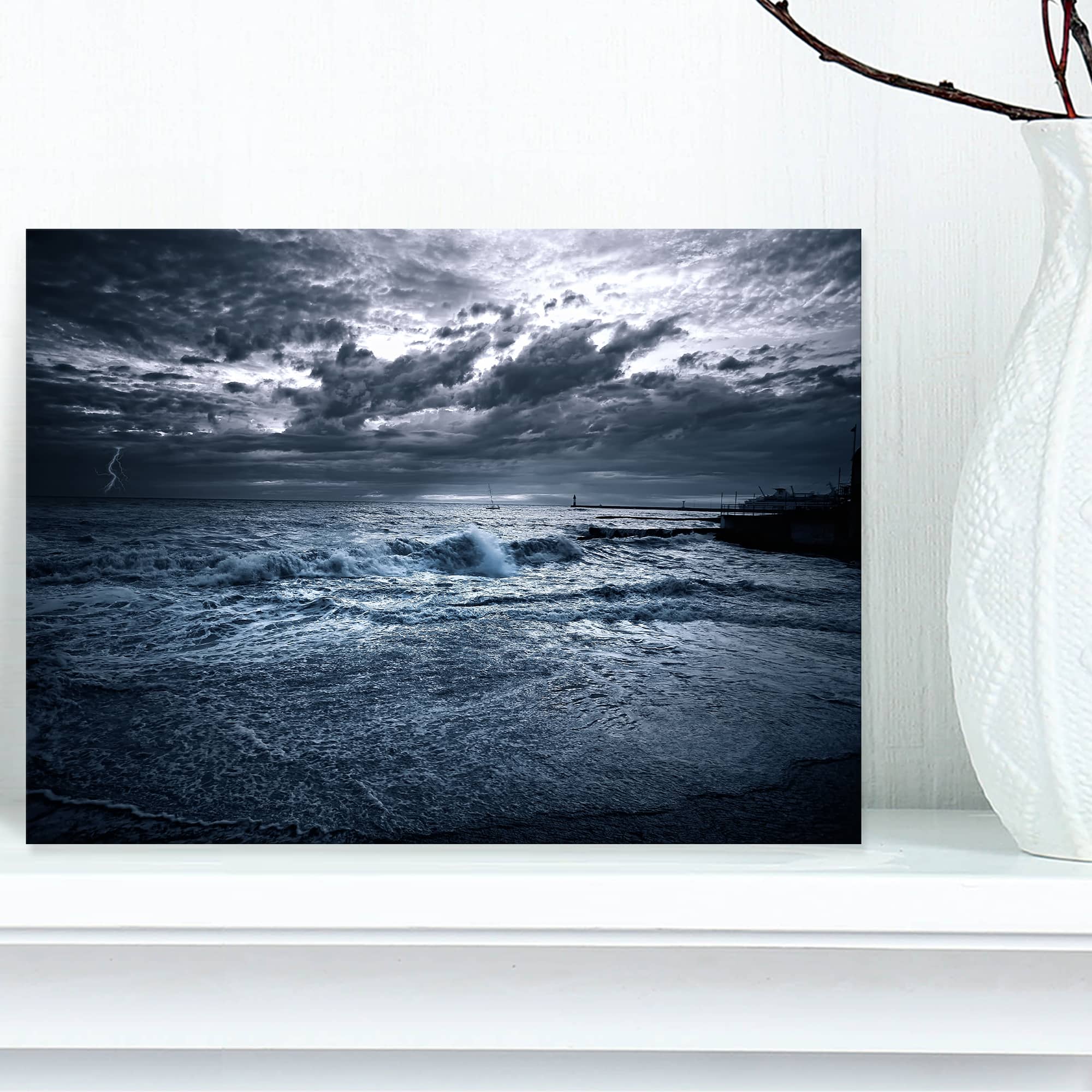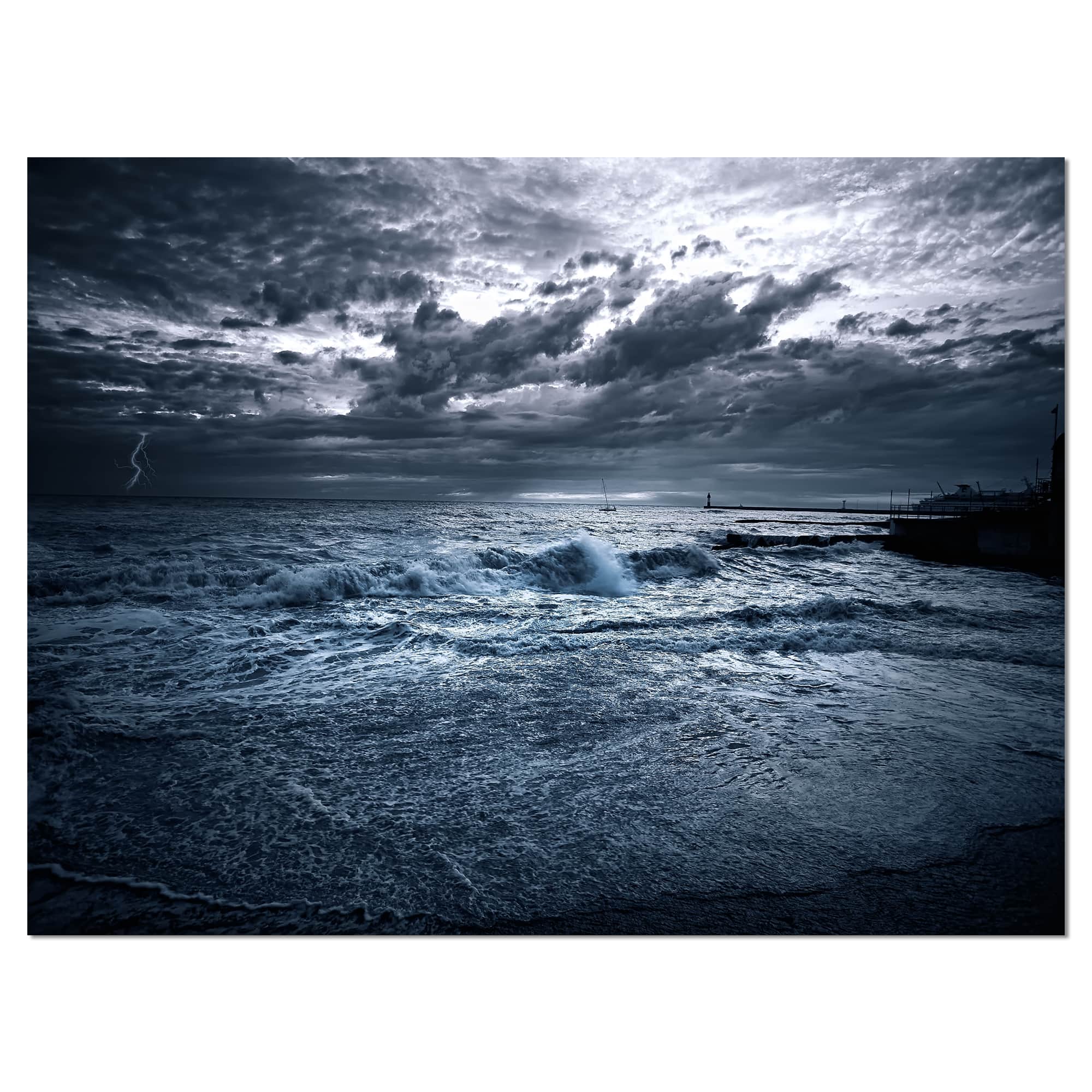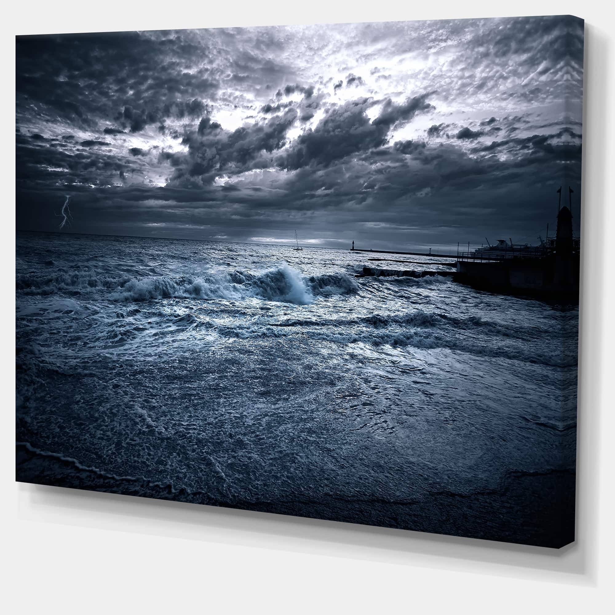 Designart - Sochi Sea Storm in Blue - Modern Landscape Wall Art Canvas