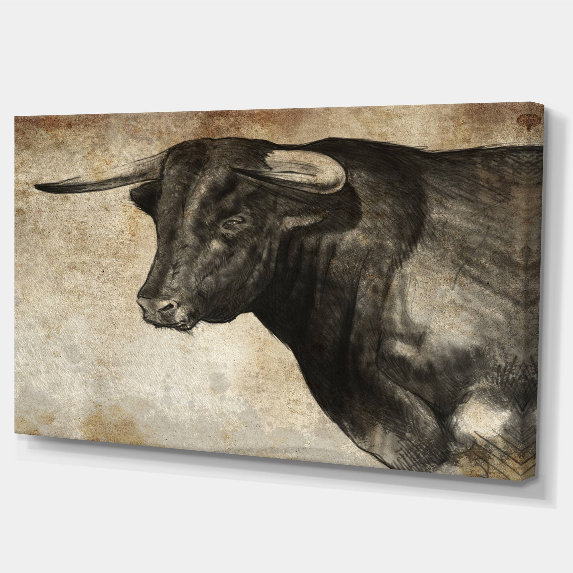 Designart - Spanish Bull Sketch - Animal Art On Canvas