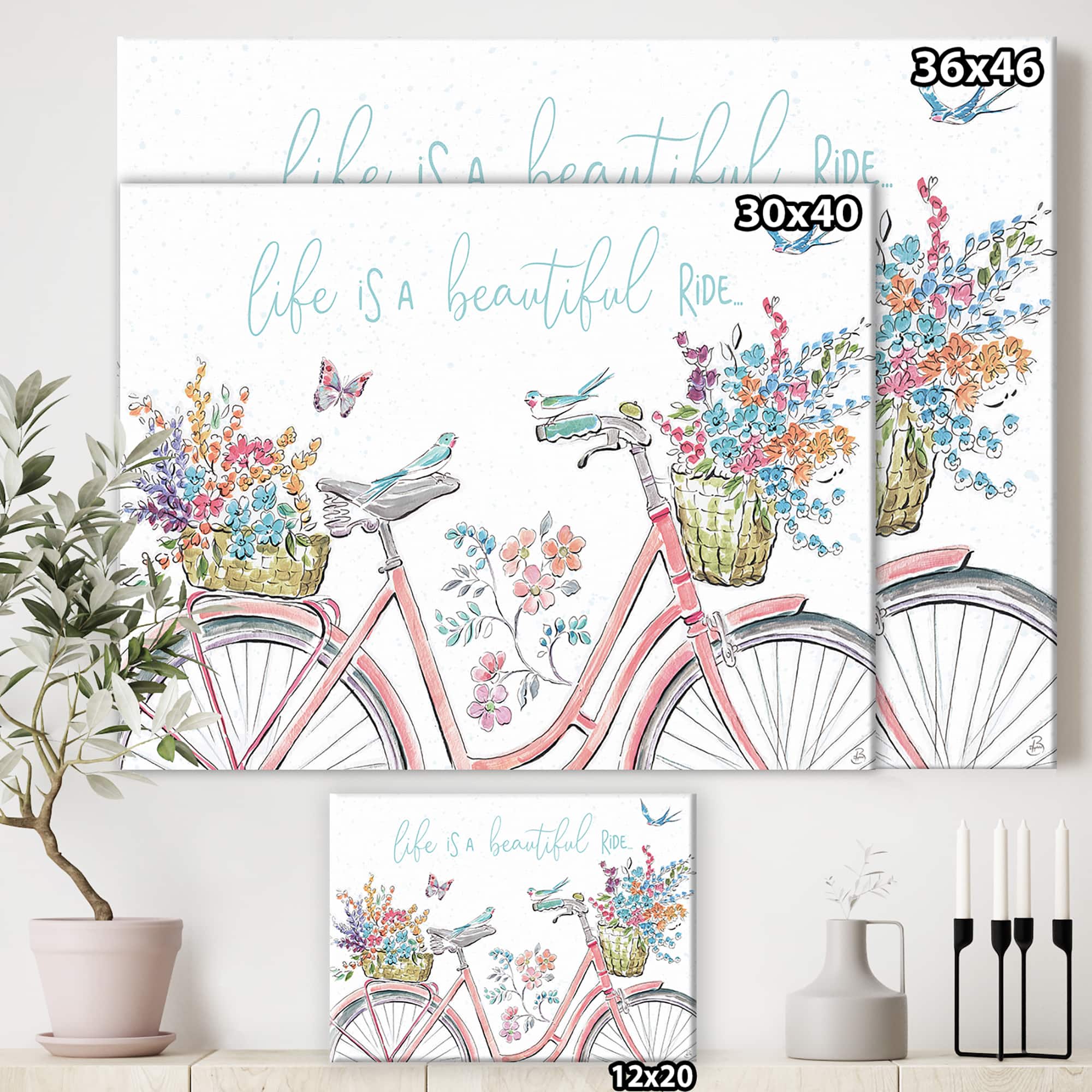 Designart - Spring Bike Bouquet - French Country Canvas Artwork
