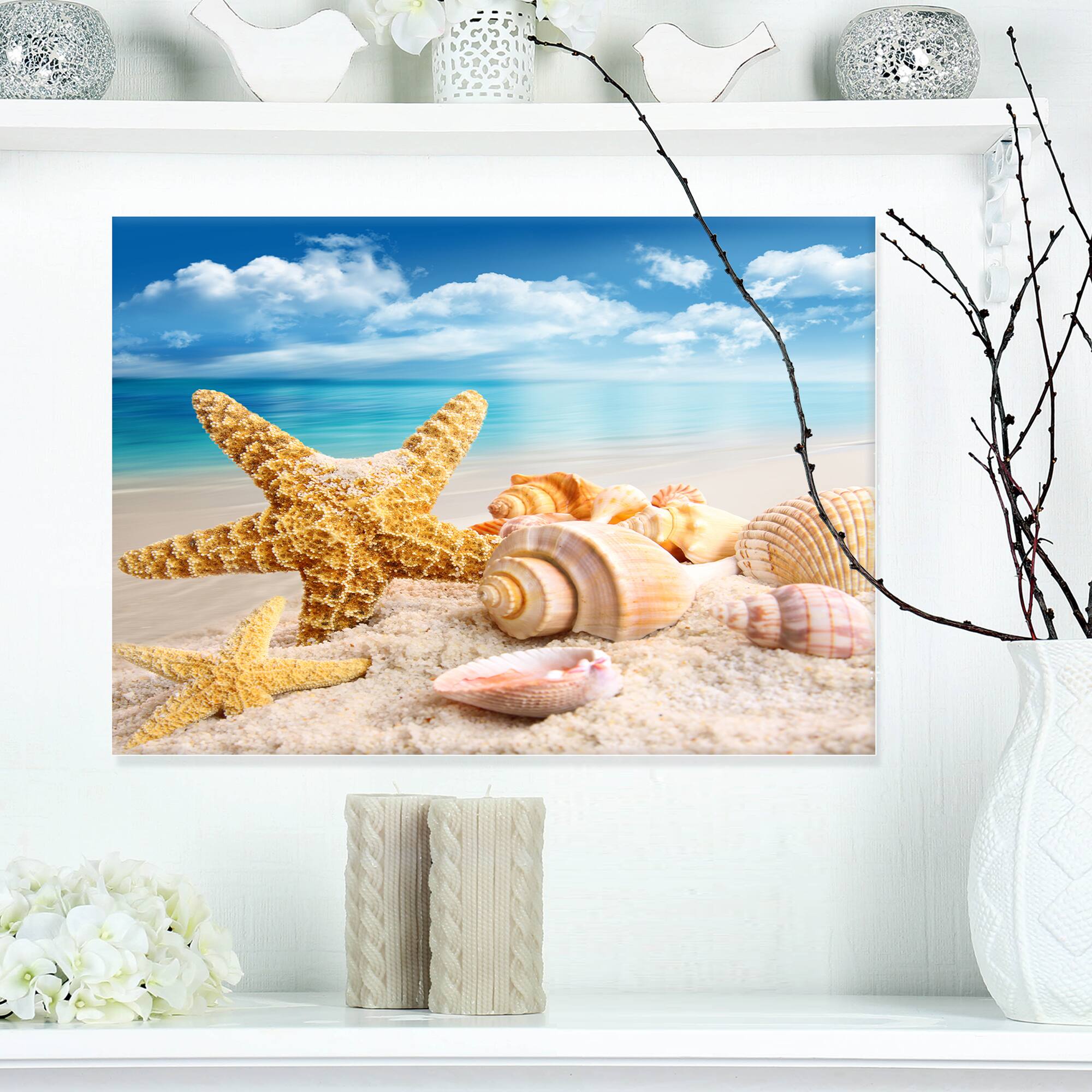 Designart - Starfish and Seashells on Beach - Seashore Photo Canvas Art Print