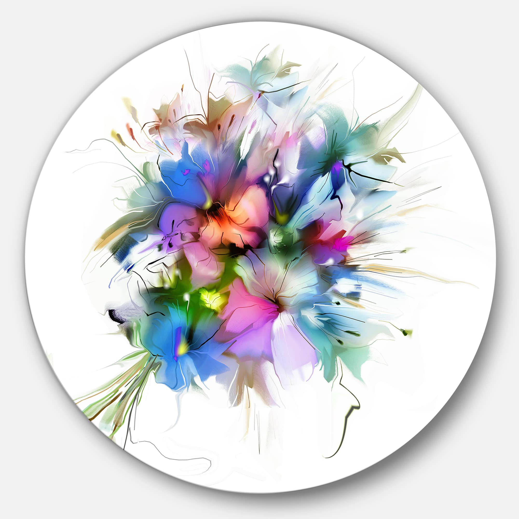 Designart - Summer Colorful Flowers' Disc Watercolor Painting Circle Metal Wall Art