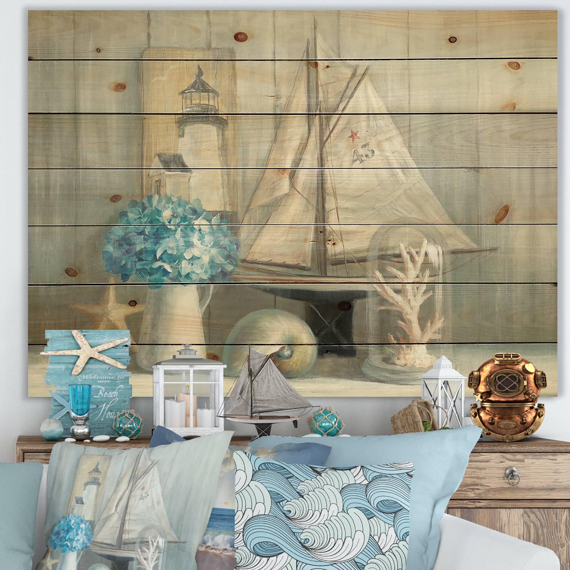 Designart - Summer Nautical House - Nautical & Coastal Print on Natural Pine Wood